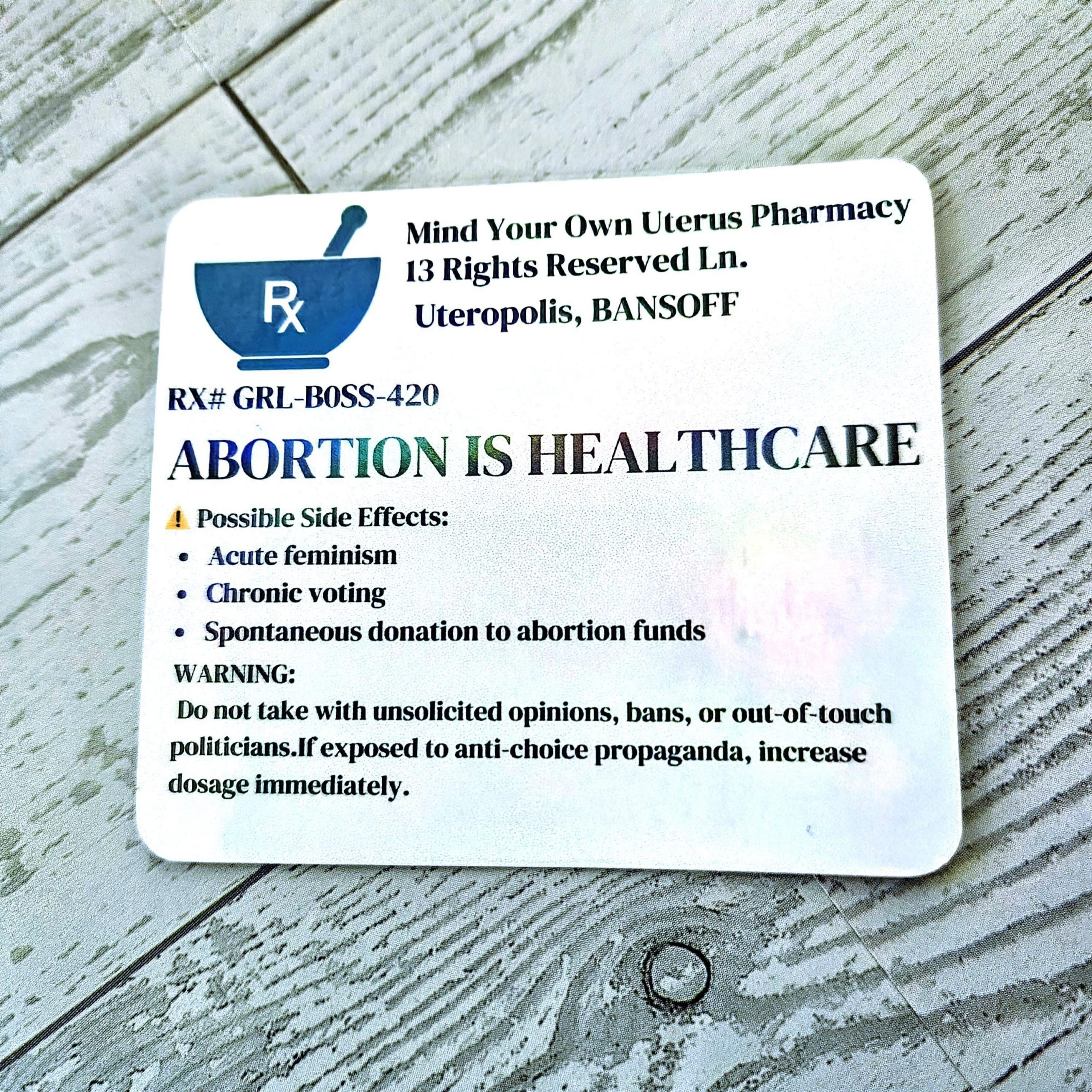 Abortion Is Healthcare – Funny Prescription Label Feminist Sticker
