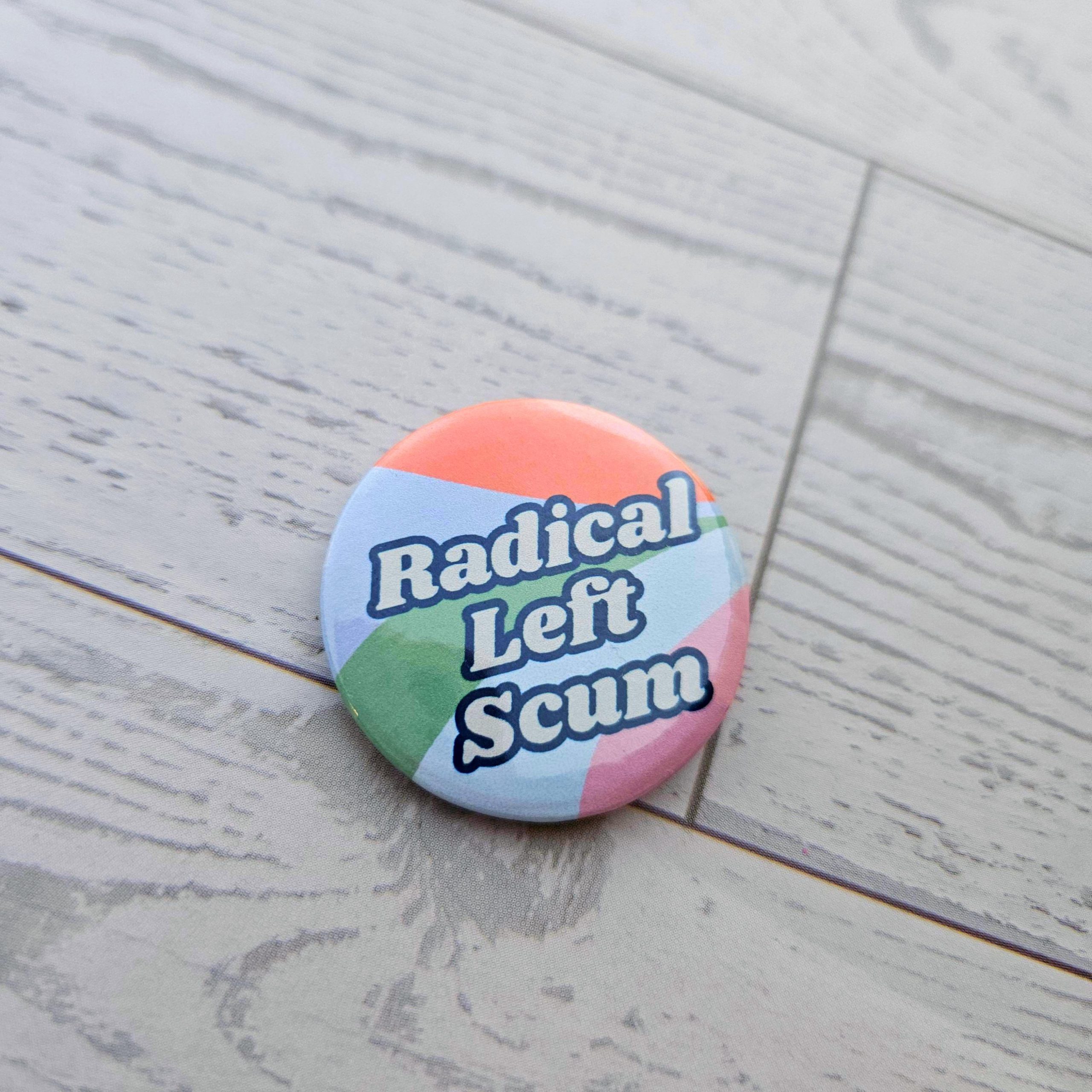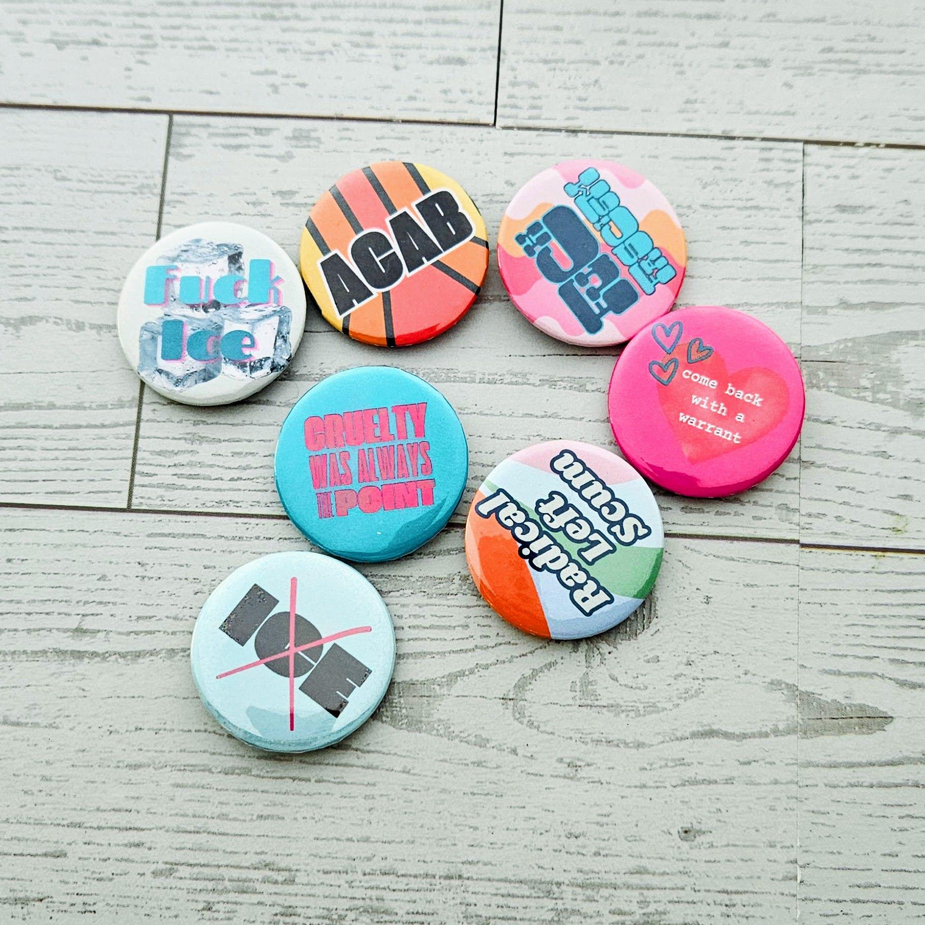 Small in size, but massive in energy. These 1.25-inch buttons are made for the moments when your outfit needs to do the talking so you don’t have to. From "Come Back With a Warrant" to "Radical Left Scum," these pins are hand-pressed for the disruptors and the change-makers.