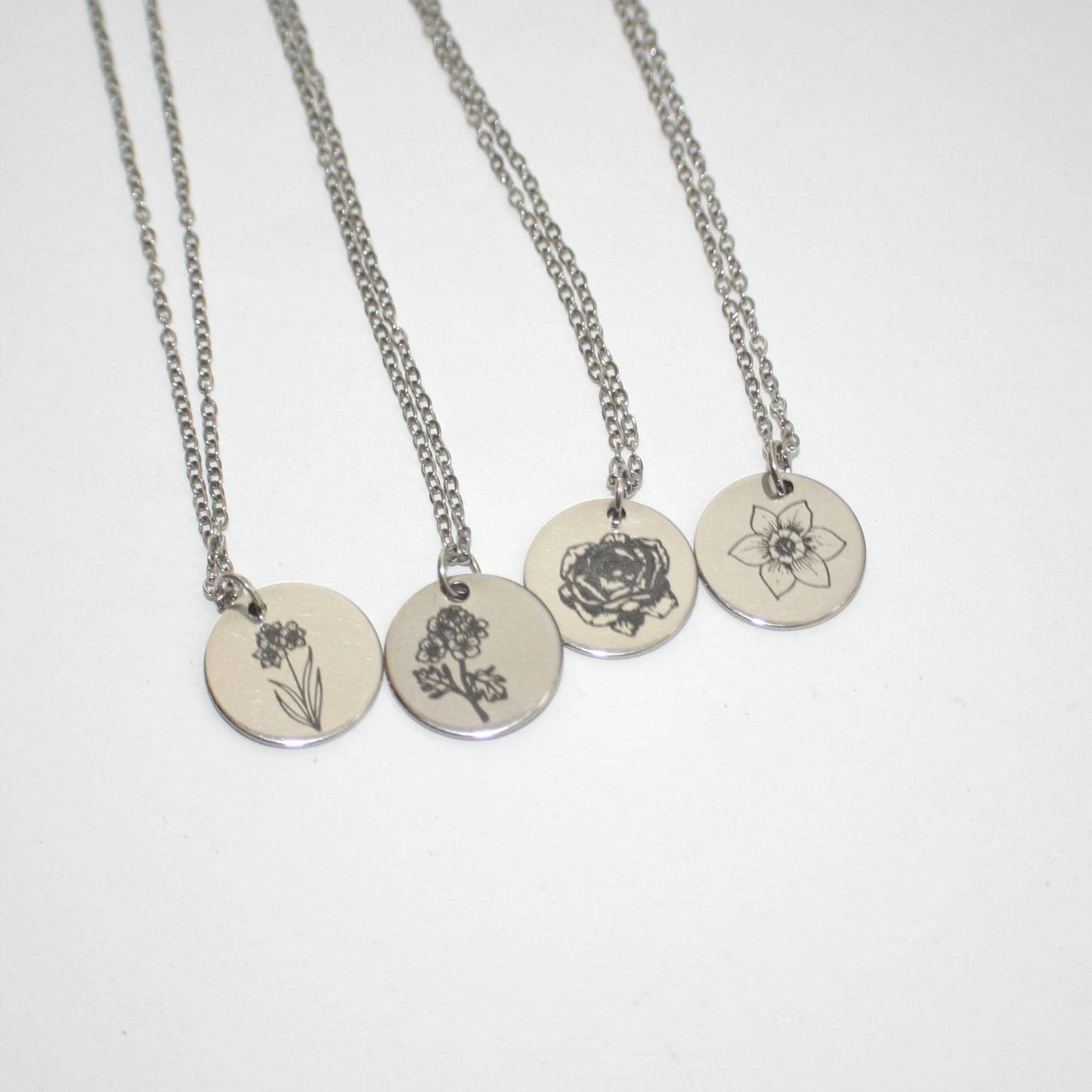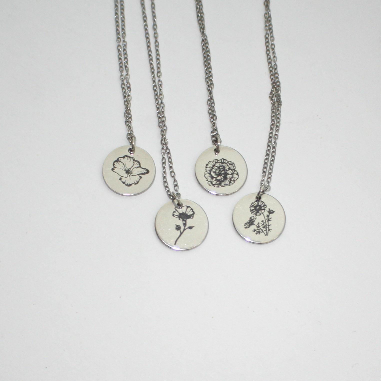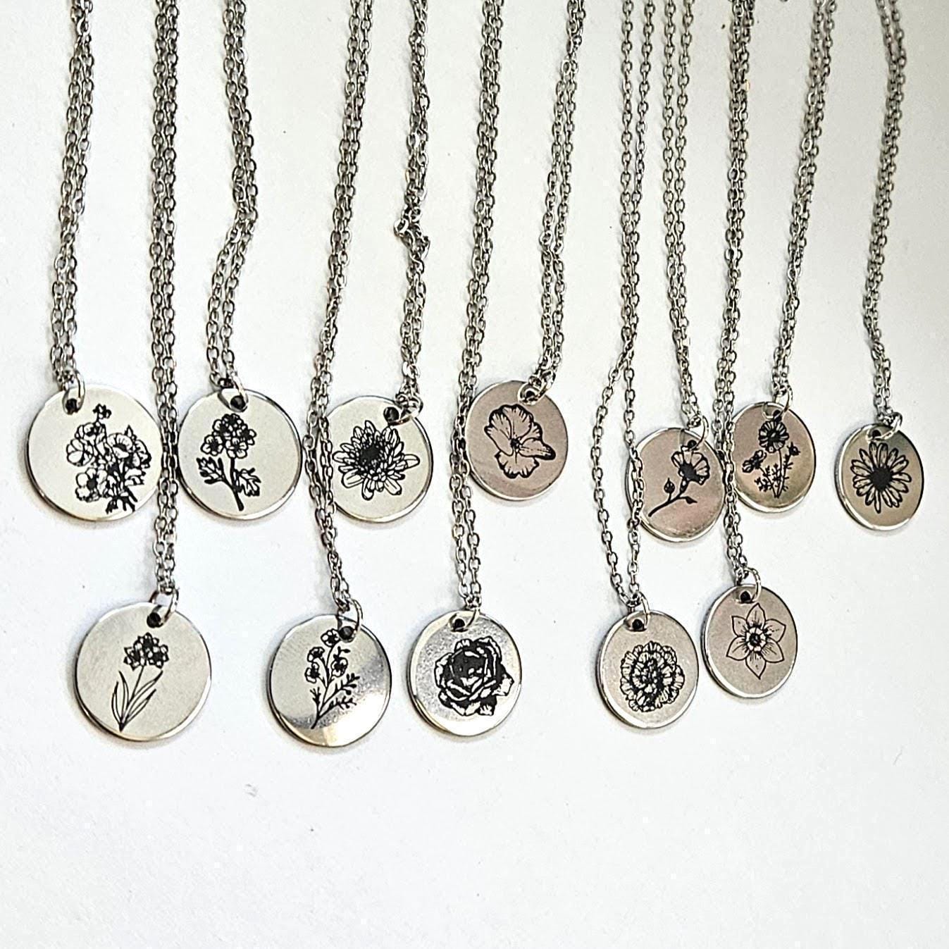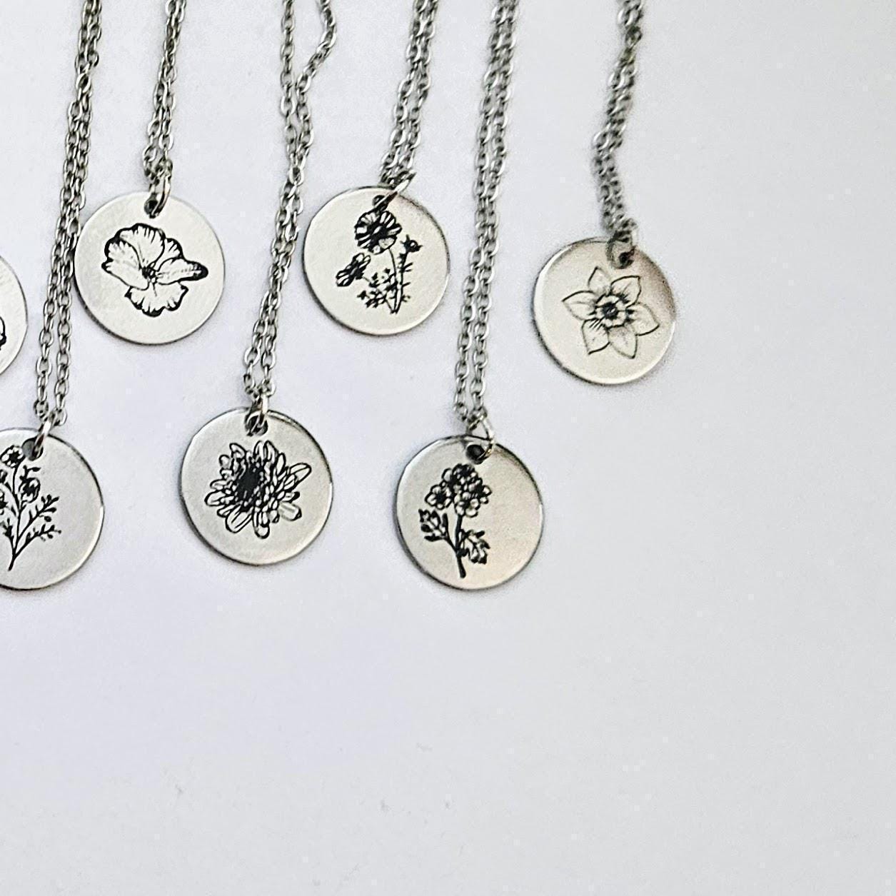 Birth Flower Necklace – Stainless Steel Layering Pendant - Your Choice – Jewelry – Handmade by ShesSoCrafty Goods
