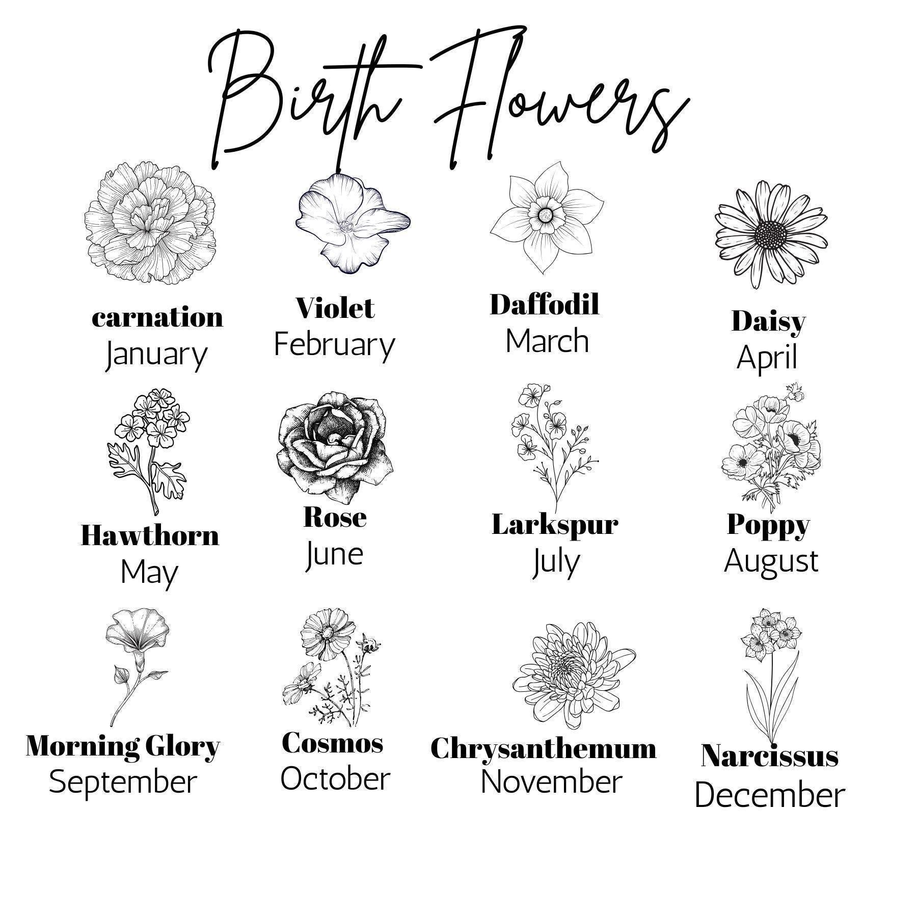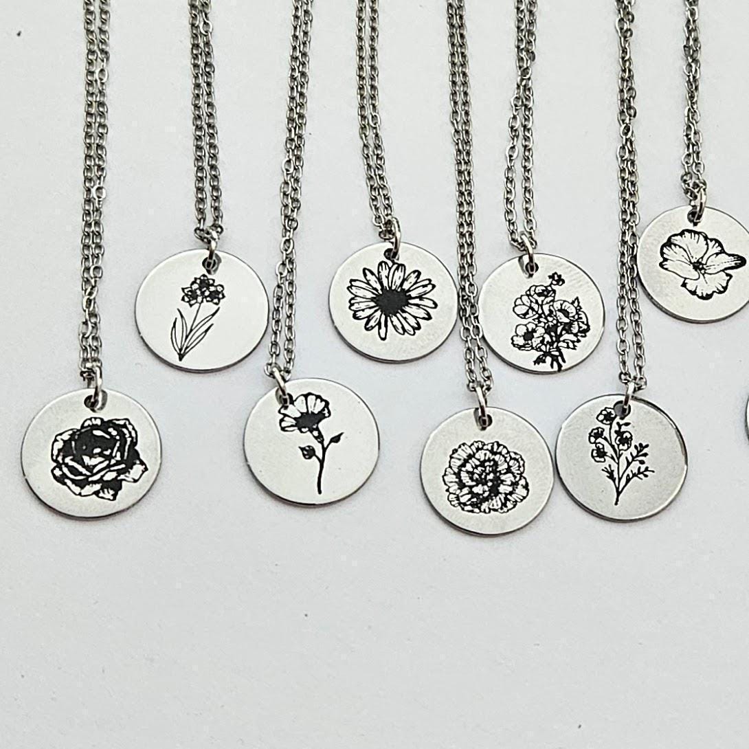 🌸 Available Designs: Choose your birth month (or gift someone theirs!) – each pendant features the corresponding flower: (refer to the last image for a picture of the exact engraving you will receive!)