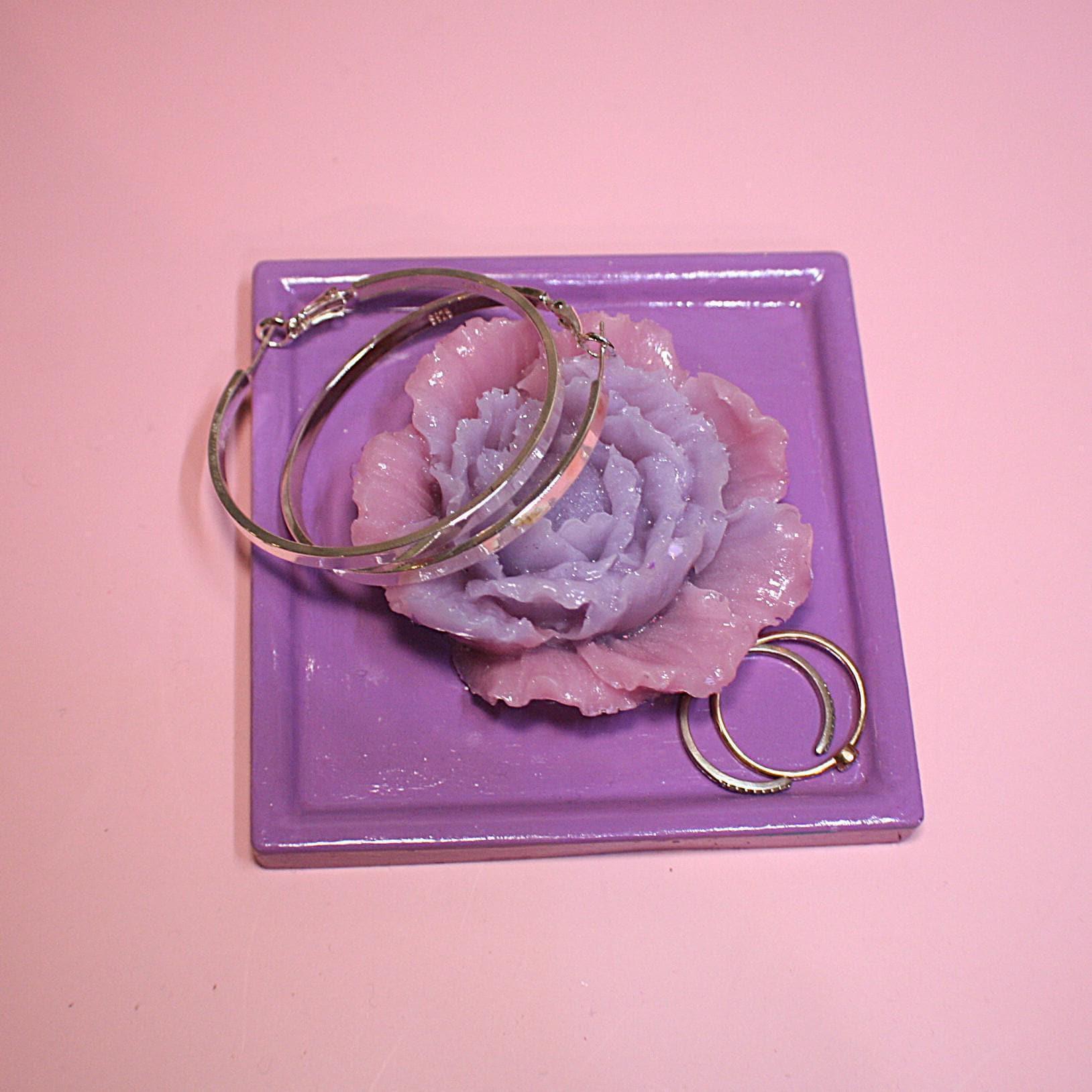 🌸 Add a touch of elegance and bold color to your space with this 100% handmade floral trinket dish, crafted from ceramic resin for a durable, high-gloss finish. Perfect as a ring dish, decorative tray, or stylish catch-all for your favorite small treasures, this dish features a large resin peony in stunning shades of lavender and deep bright rose. Whether placed on your vanity, bedside table, or bathroom counter, this jewelry dish keeps your essentials organized while doubling as eye-catching décor.