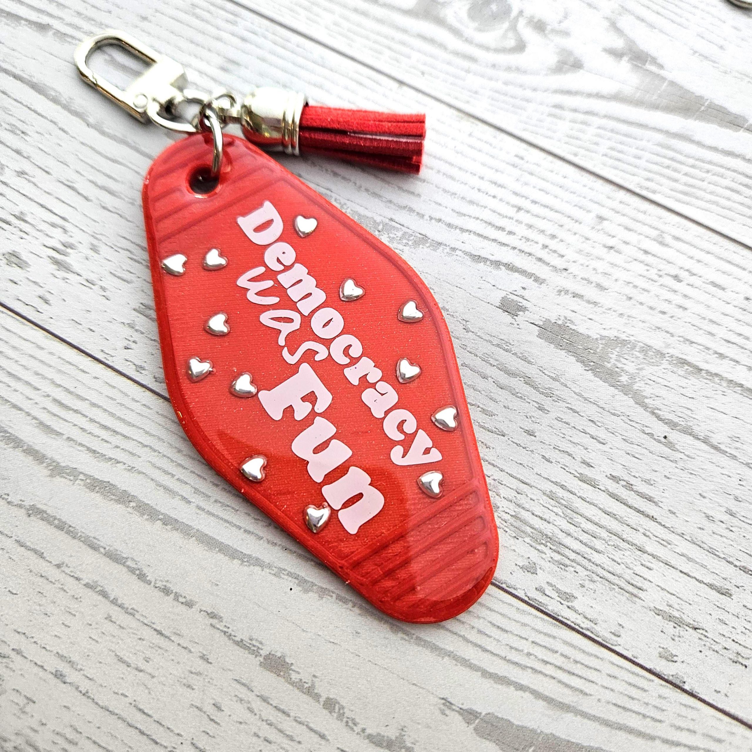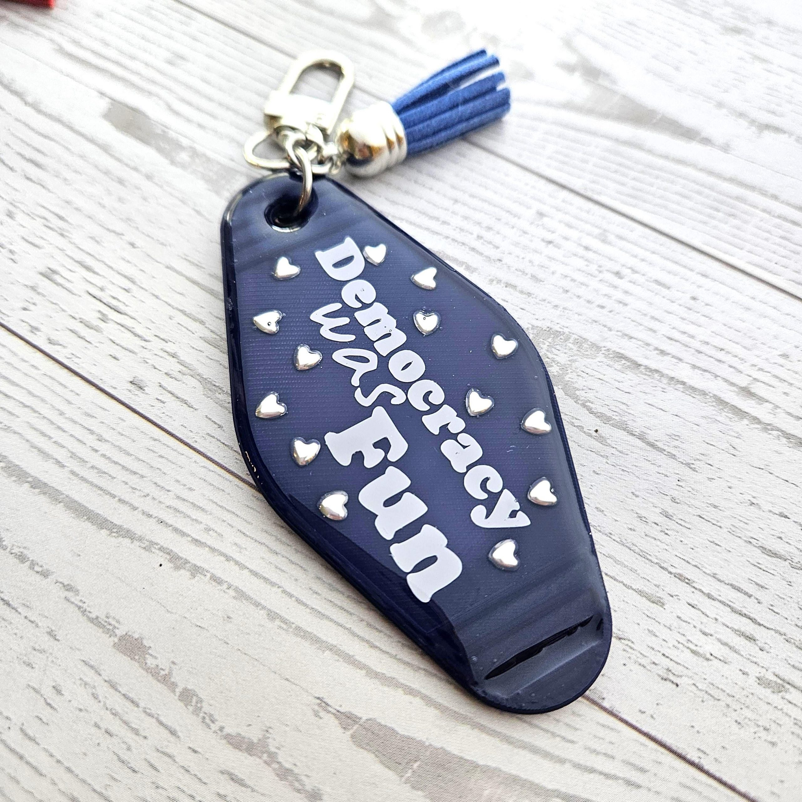 Democracy Was Fun Resin Motel Keychain Political Activist Gift