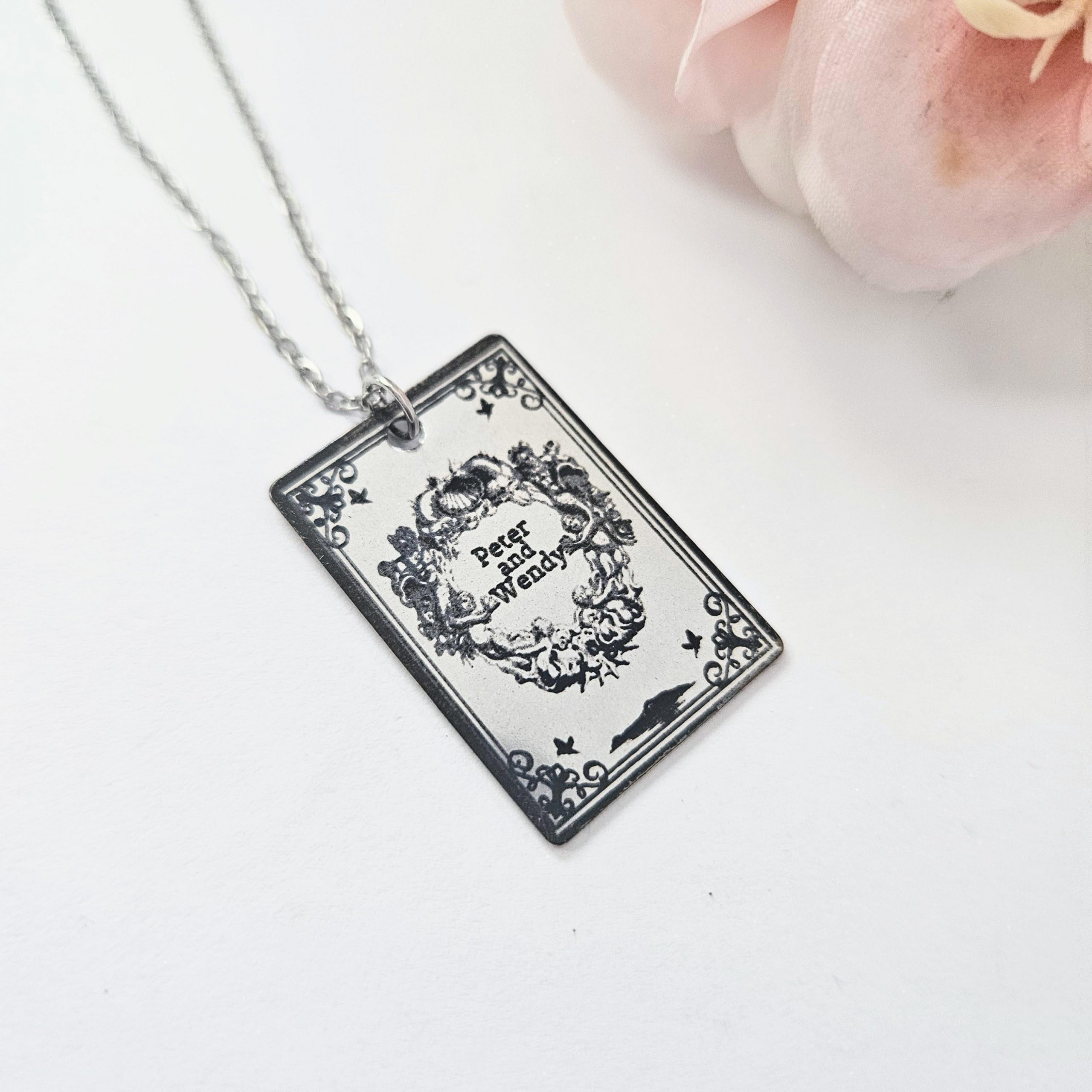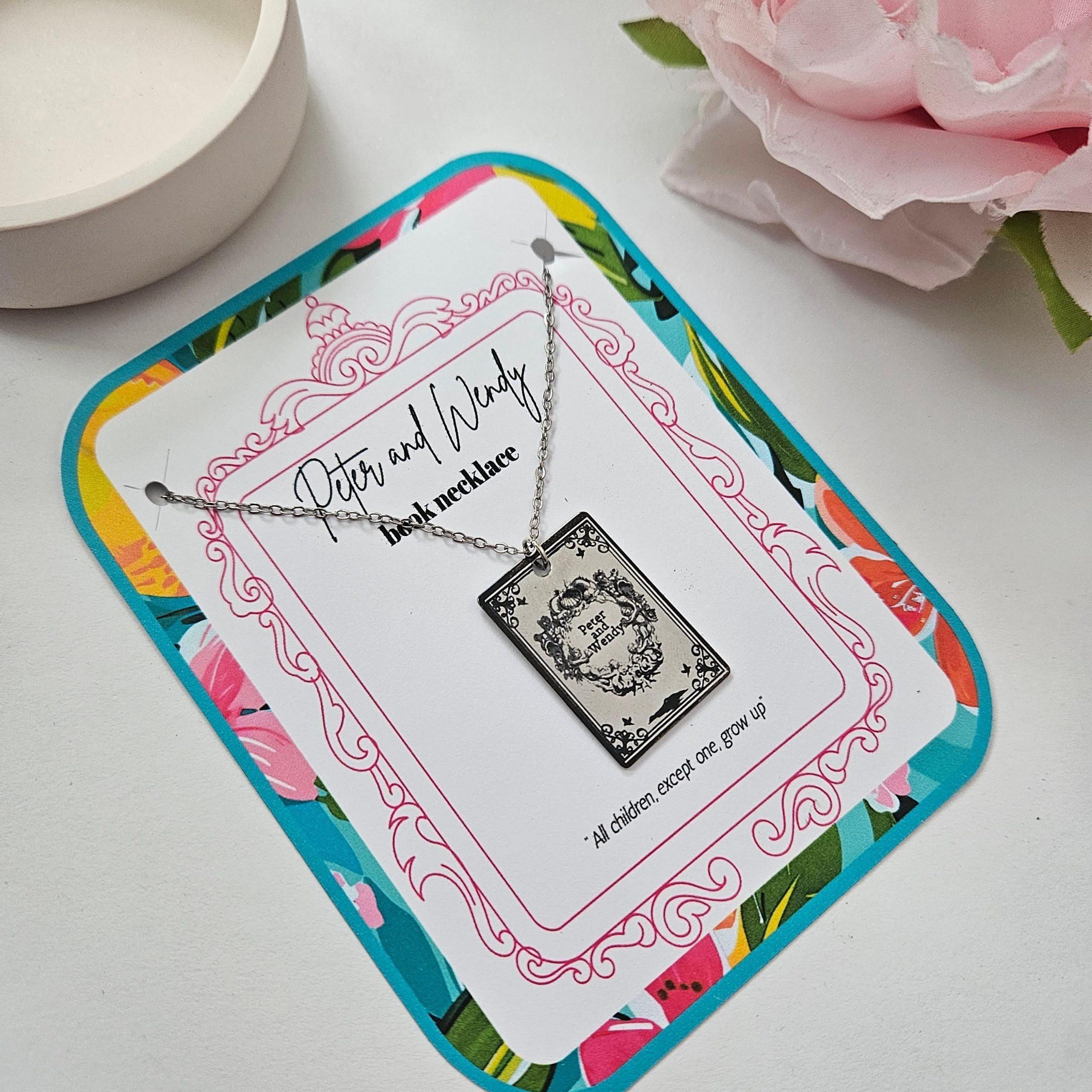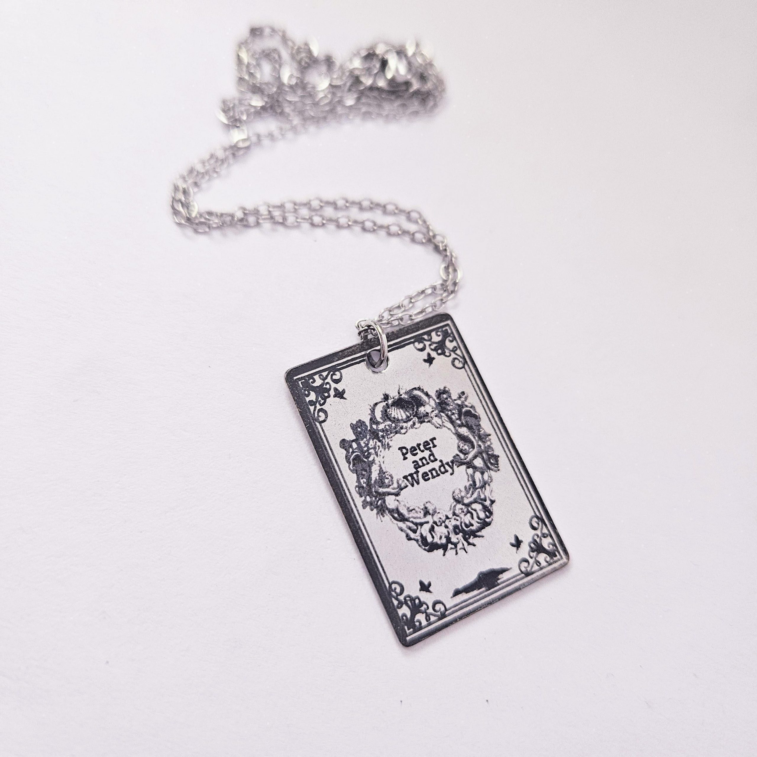 Engraved Peter and Wendy Book Necklace – Stainless Steel Literary Jewelry