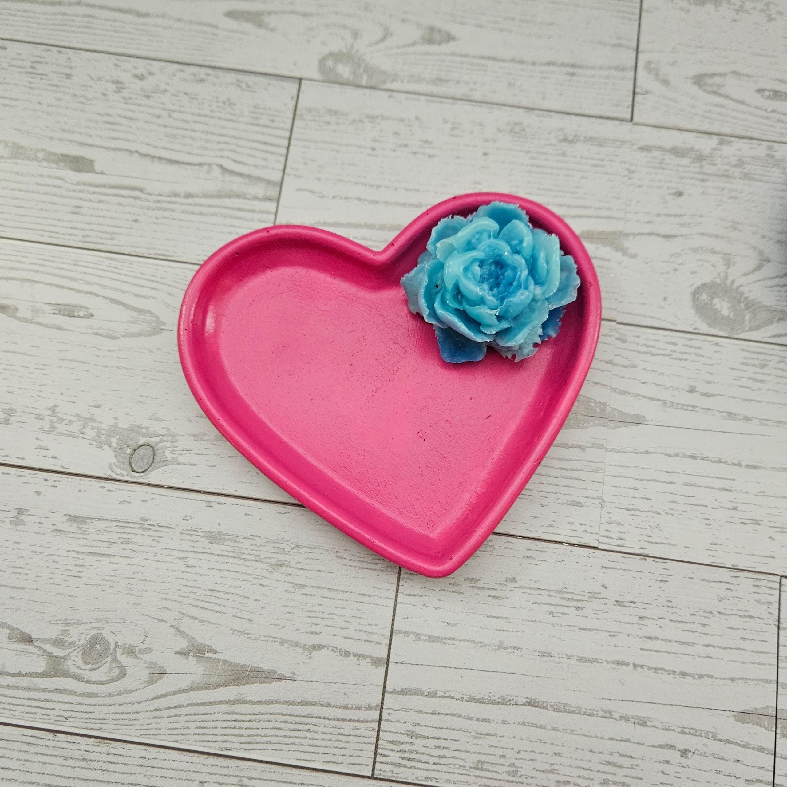 Add a pop of charm and color to your space with this heart-shaped floral trinket dish — a sweet little statement piece for your vanity, bedside table, or desk. Each dish is 100% handmade from start to finish, featuring bright resin florals on a hand painted, hand cast concrete tray. Whether you're using it as a ring dish, catch-all tray, or jewelry holder, it's a beautiful blend of function and personality.