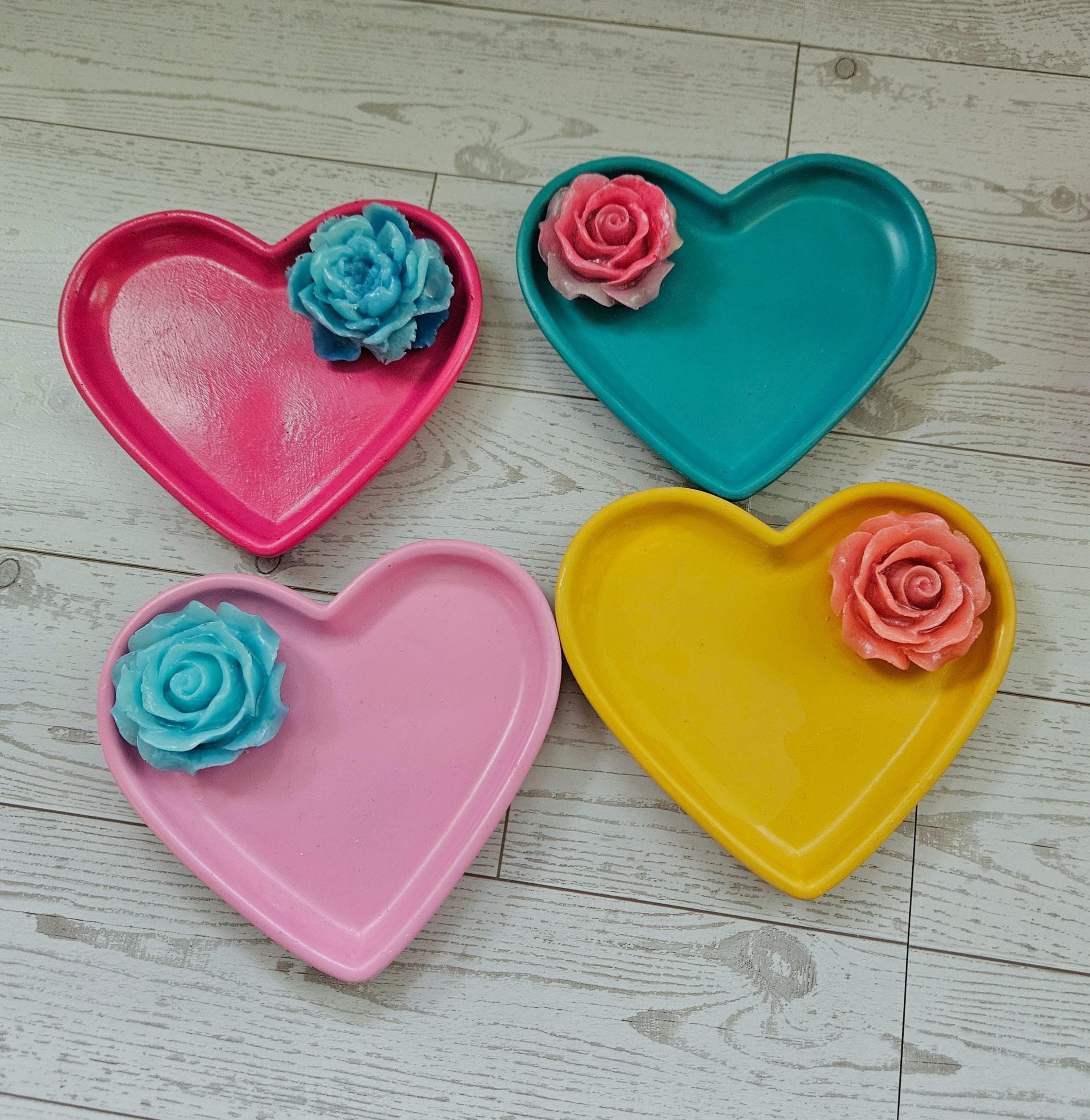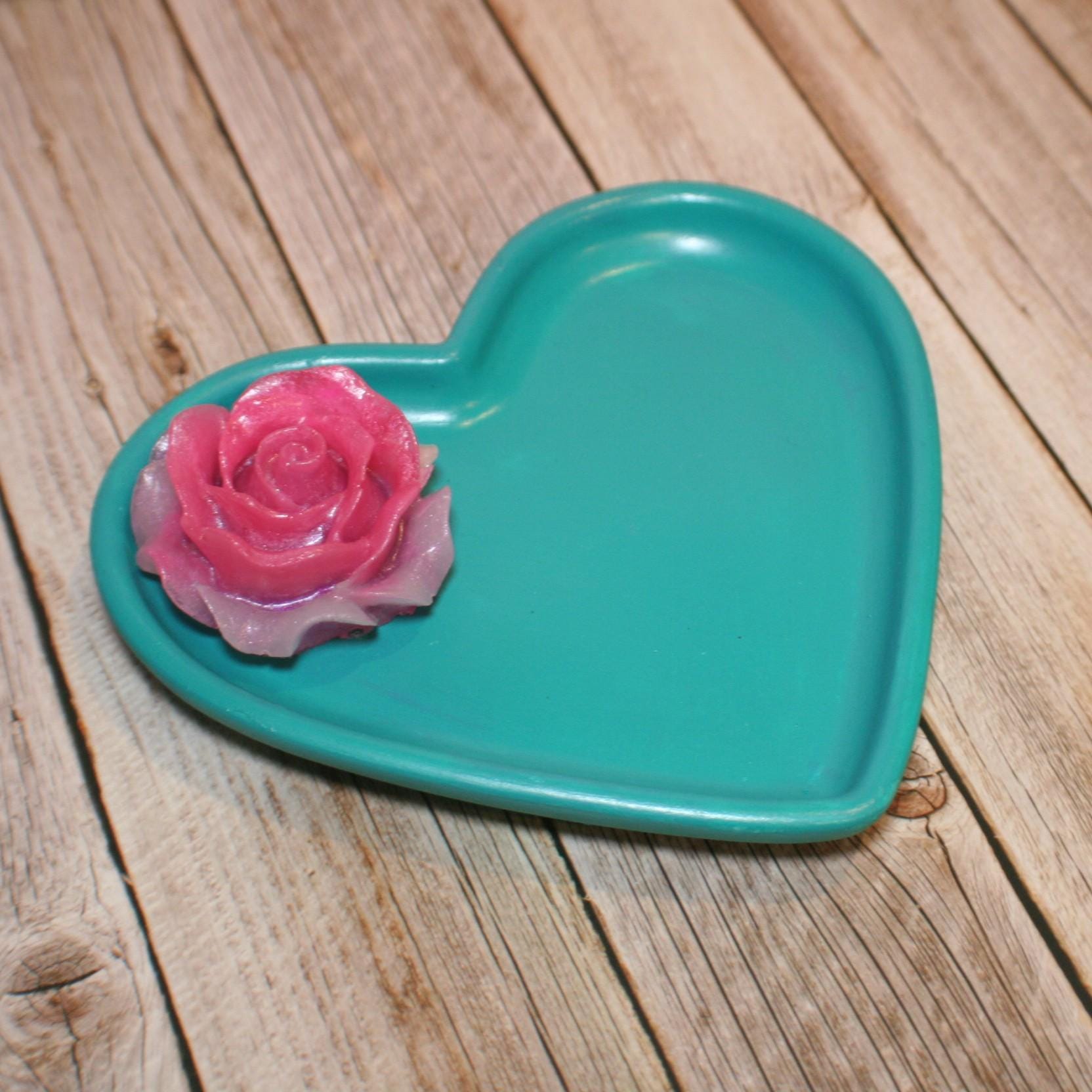 Floral Heart-Shaped Trinket Dish — Bold, Handmade Jewelry Holder for Vanity or Gift Giving