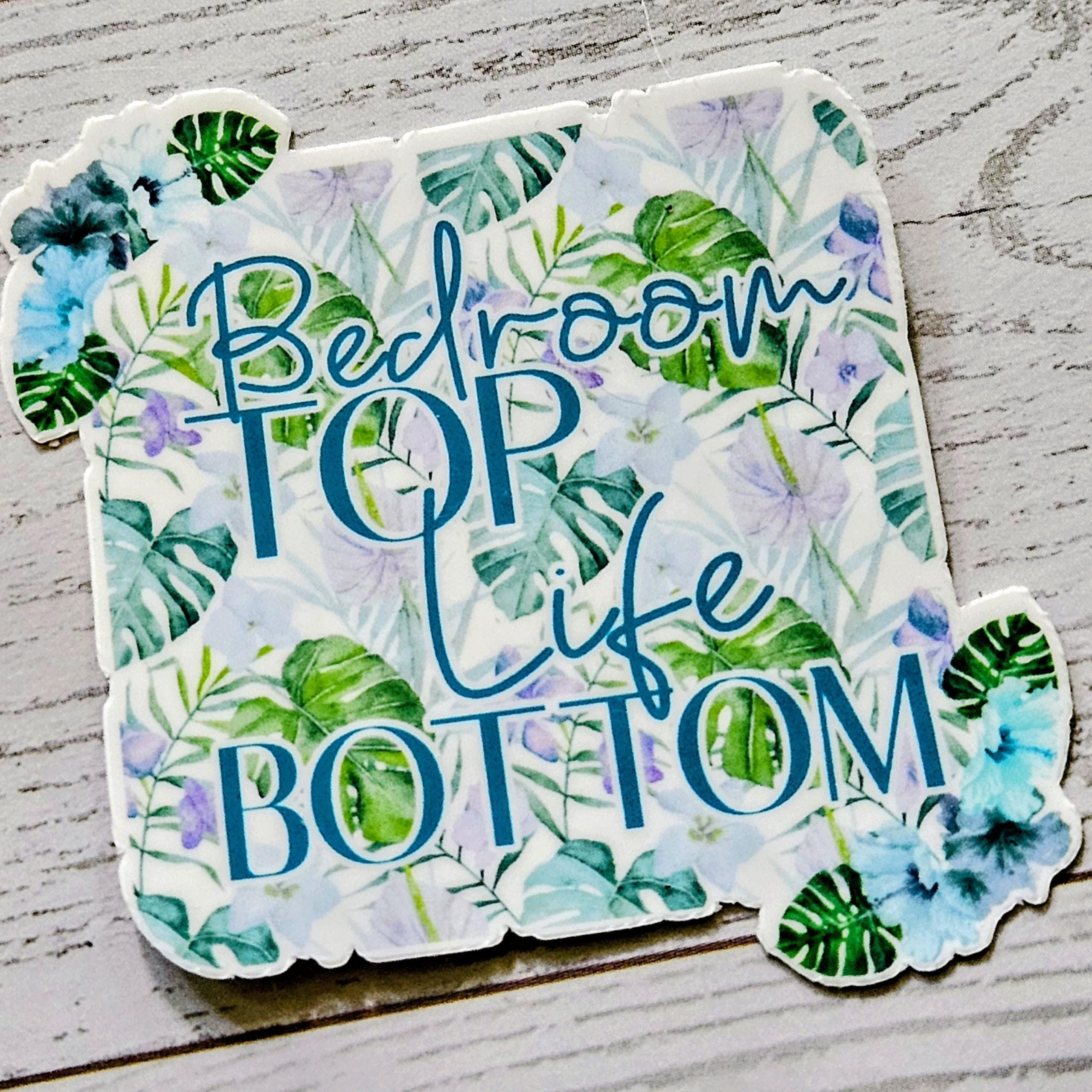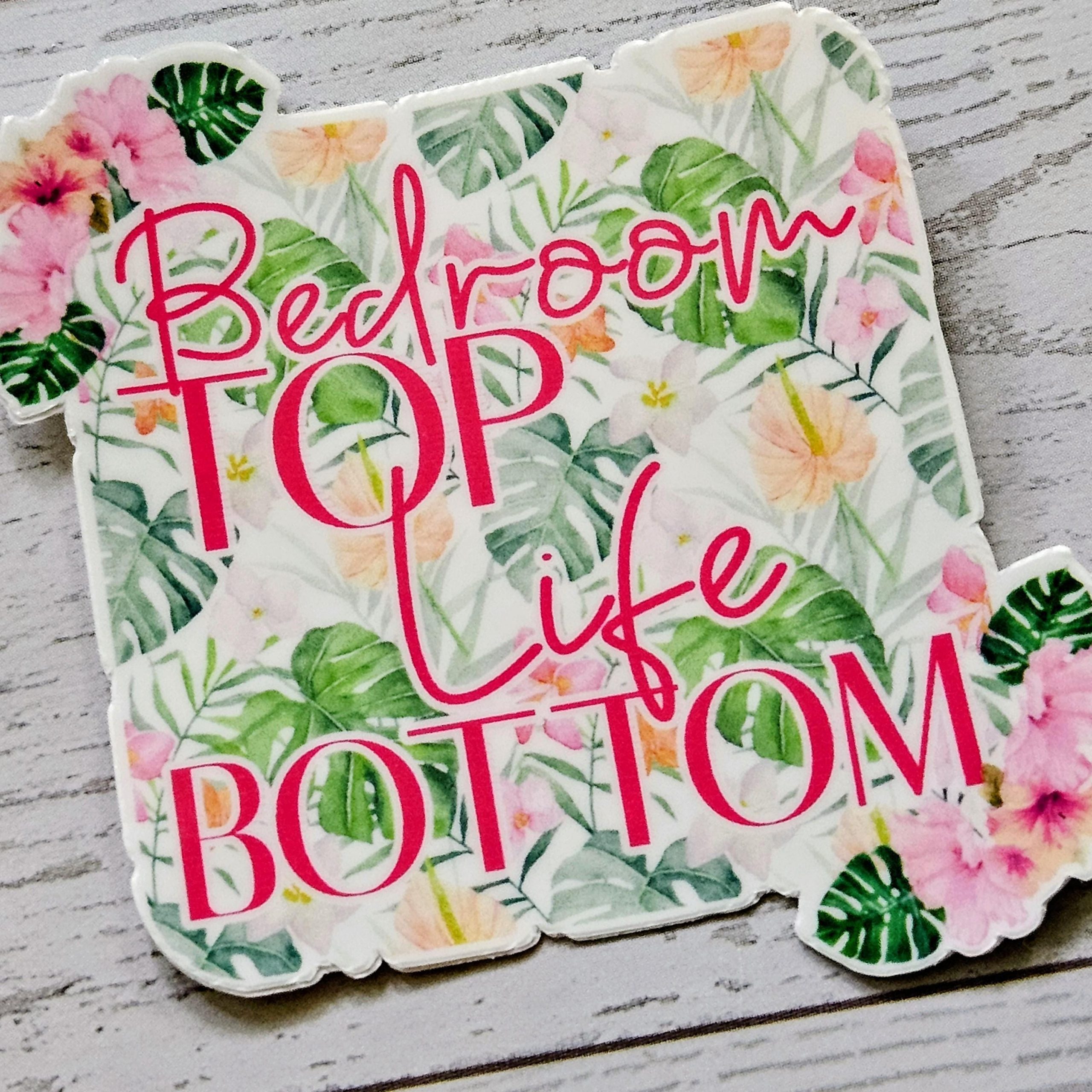 Funny Vinyl Sticker – Bedroom Top Life Bottom | Tropical Floral Waterproof Decal