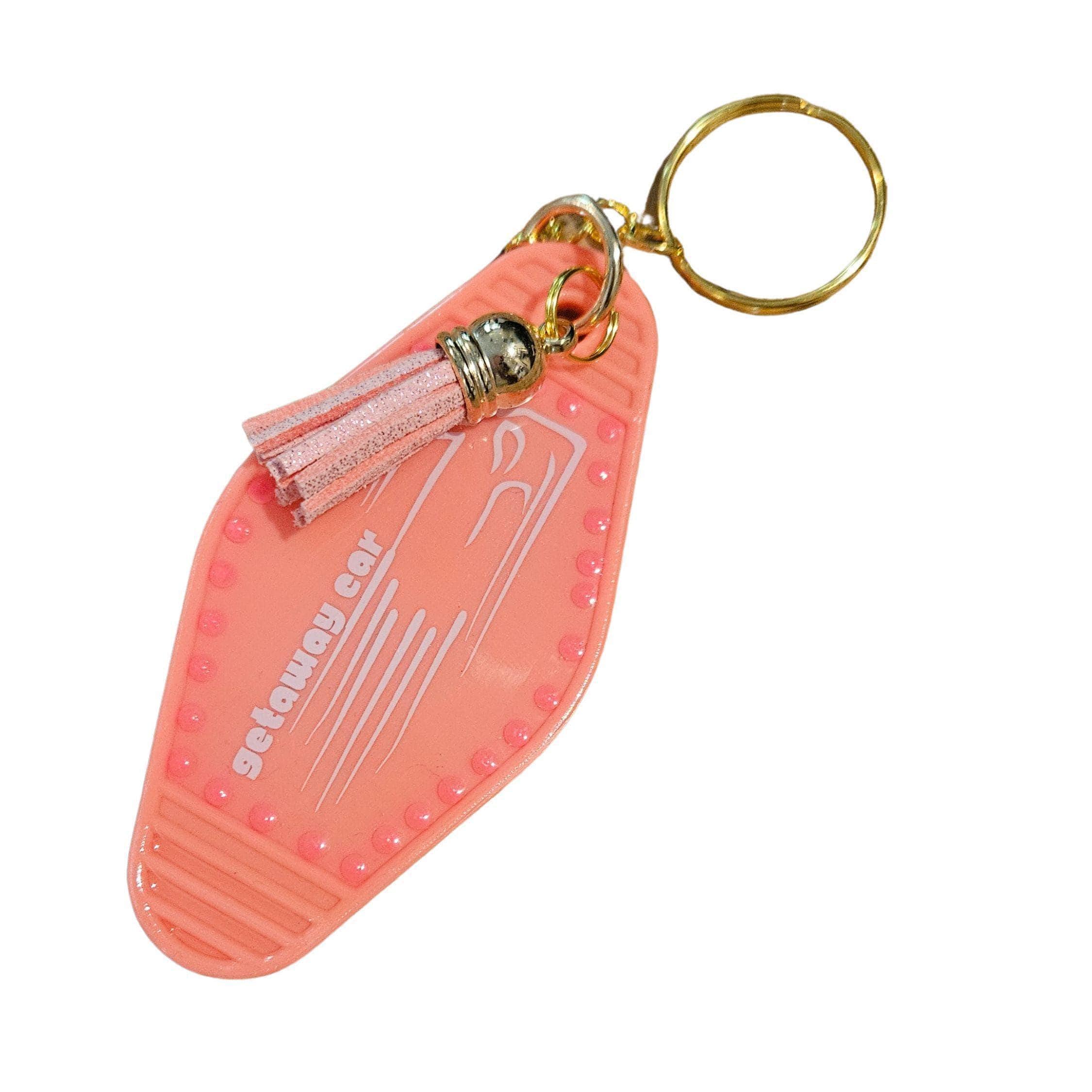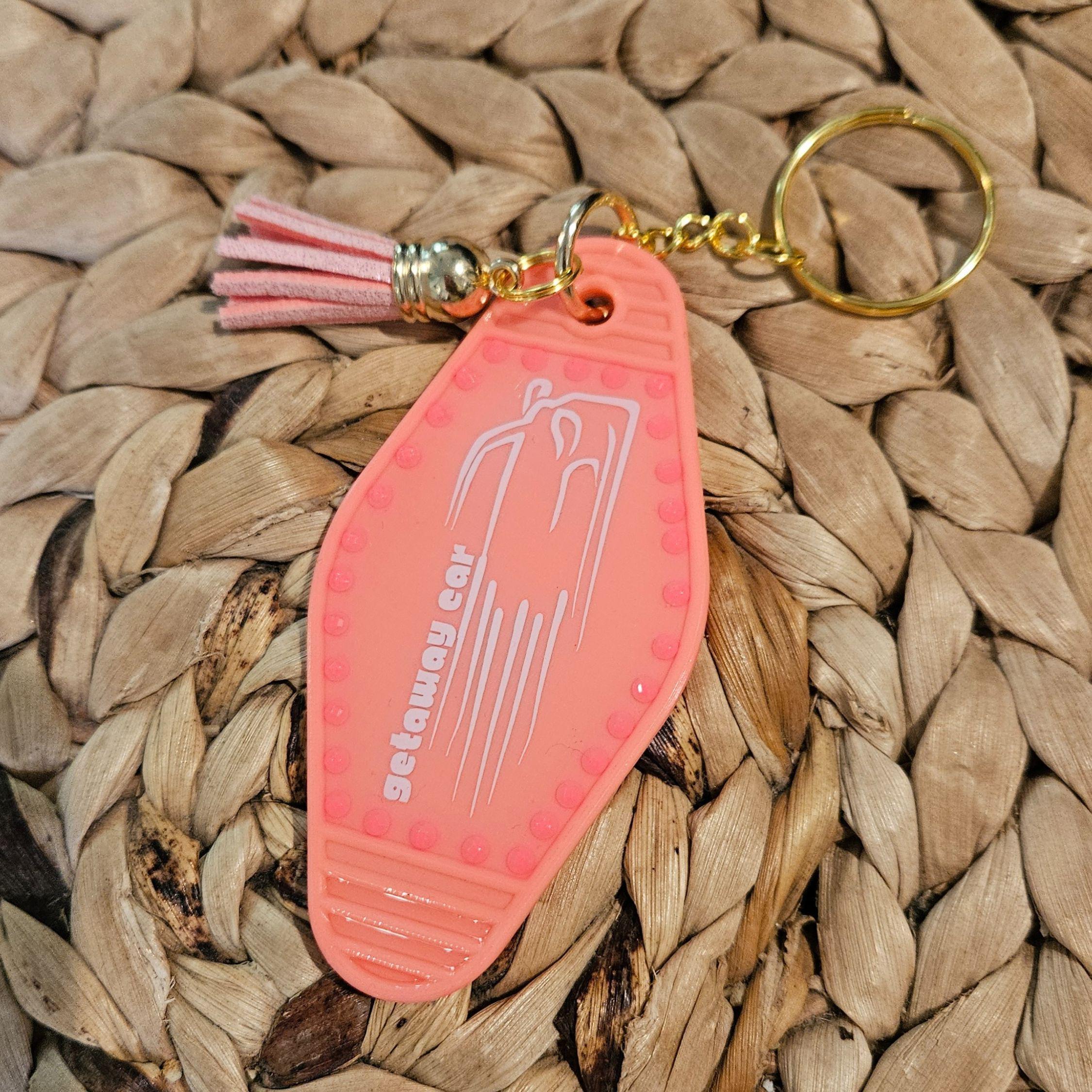 Getaway Car Motel Keychain: Coral Pink Rhinestone Tassel, Swiftie Gift