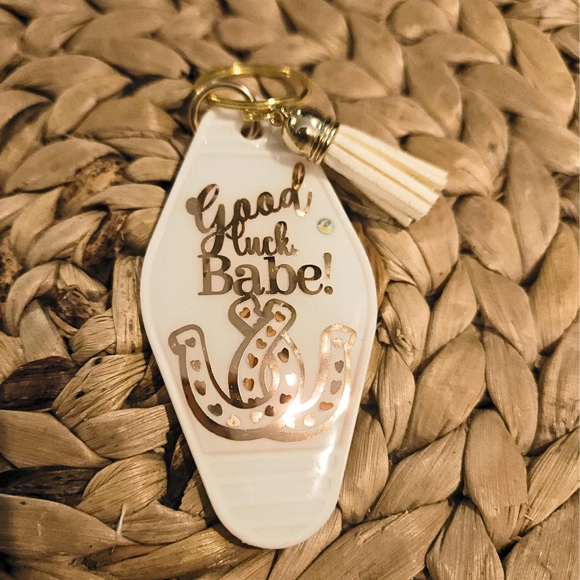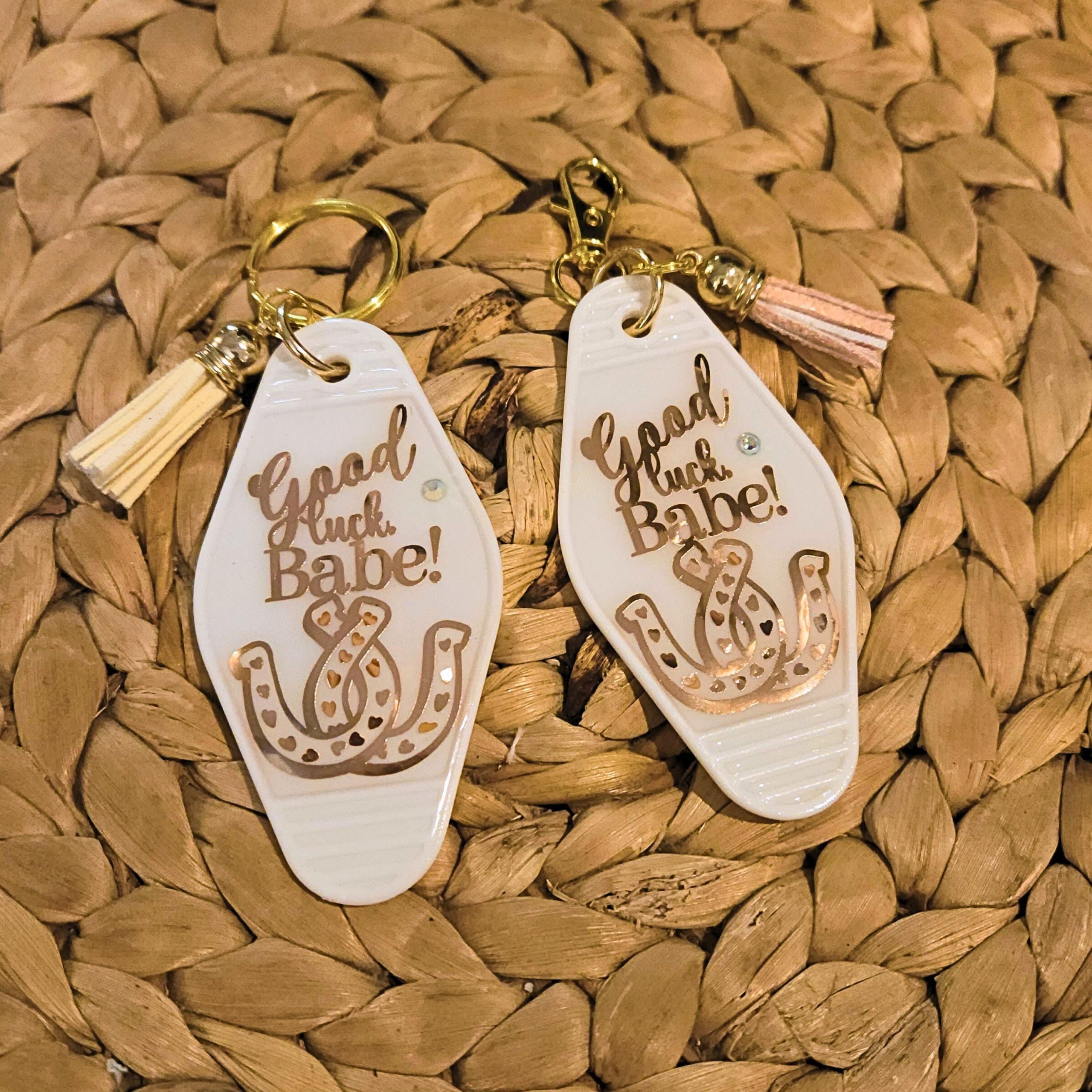 Discover a little sparkle and positivity with our Good Luck Babe keychain, designed to brighten your day and inspired by the vibrant spirit of Chappell Roan. This chic accessory blends the elegance of a white base with shimmering gold accents, making it a perfect lucky keychain or thoughtful gift for her. Whether you choose the playful cream sequin tassel or the understated cream tassel, this piece adds a touch of glam and good vibes wherever you go.