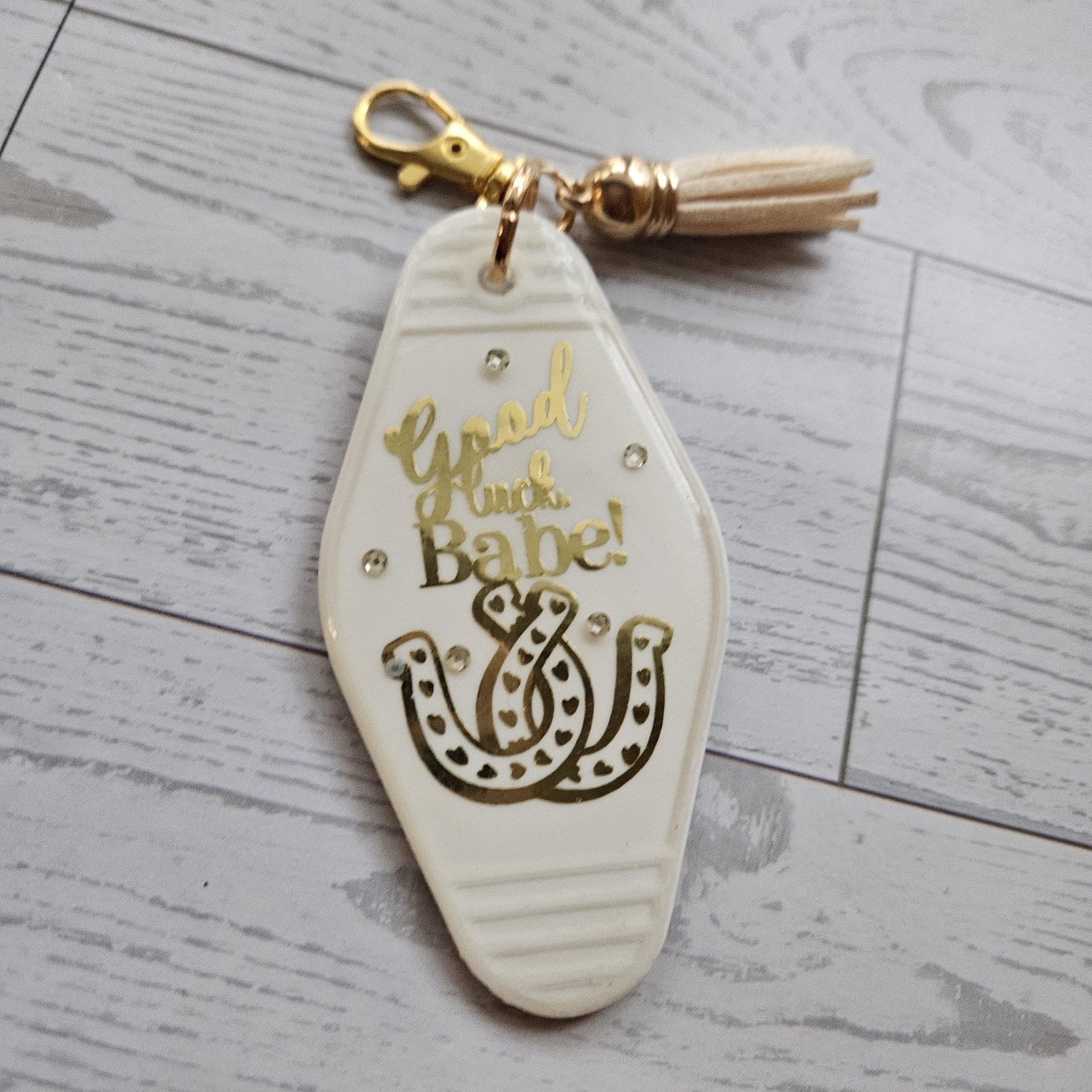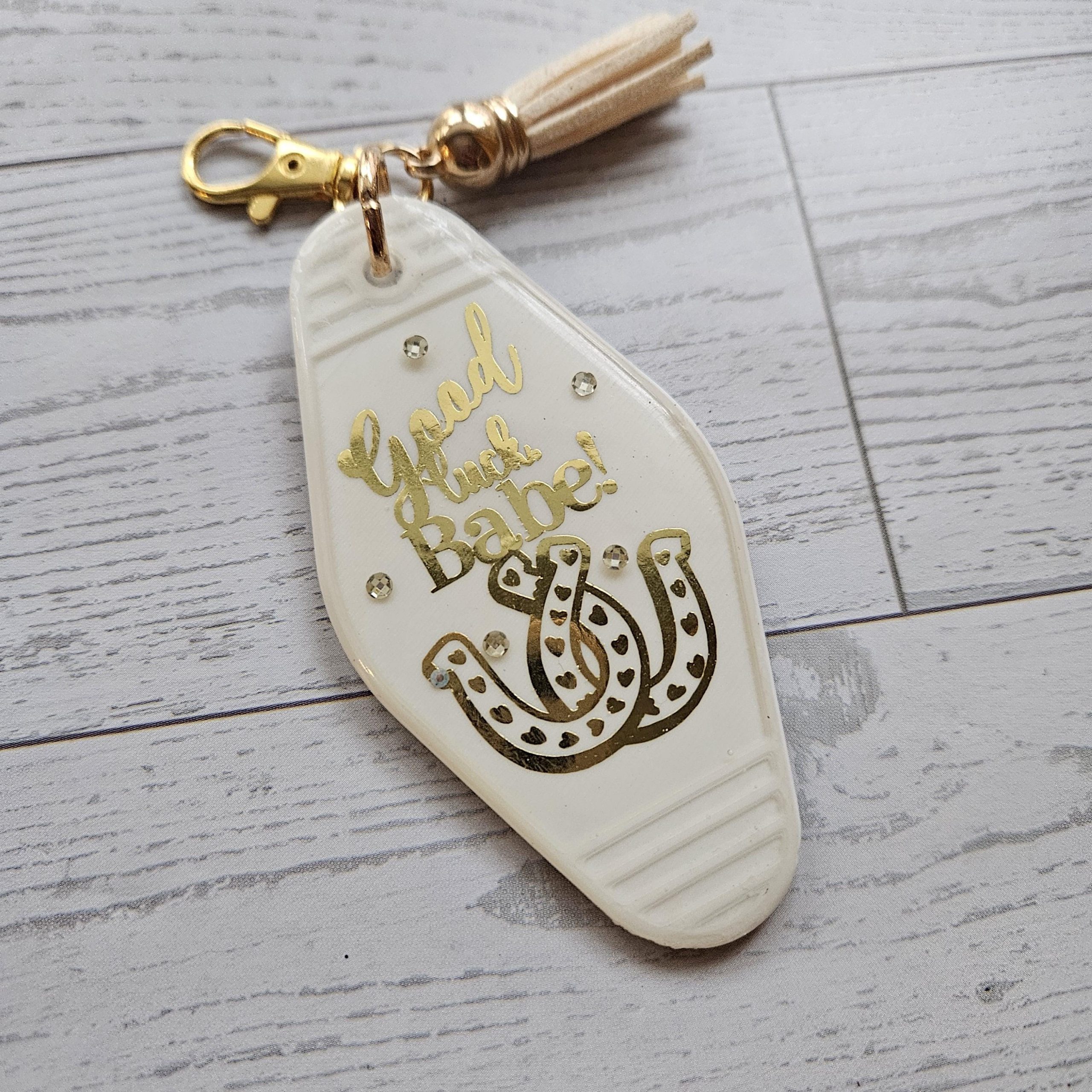 Good Luck Babe Keychain: Chic White Gold Design – Cream Tassel