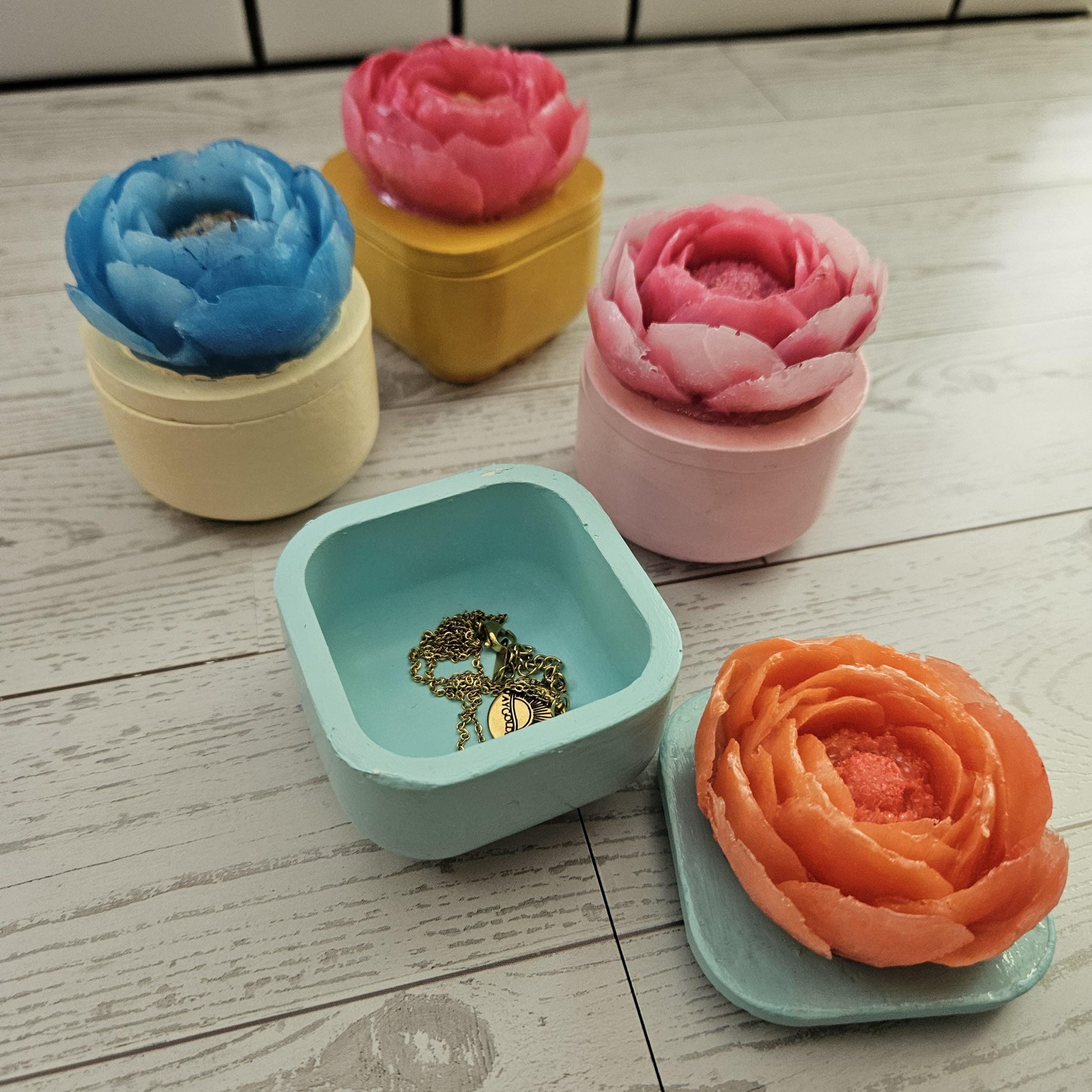 🌸A charming hand-cast decorative box with a stunning resin peony lid—perfect for storing small treasures with a romantic, artistic touch. Each box is individually poured, painted, and topped with a delicately sculpted floral lid. Whether you're gifting bridesmaids, organizing your vanity, or looking for a unique wedding accessory, this box adds elegance and charm to any space.