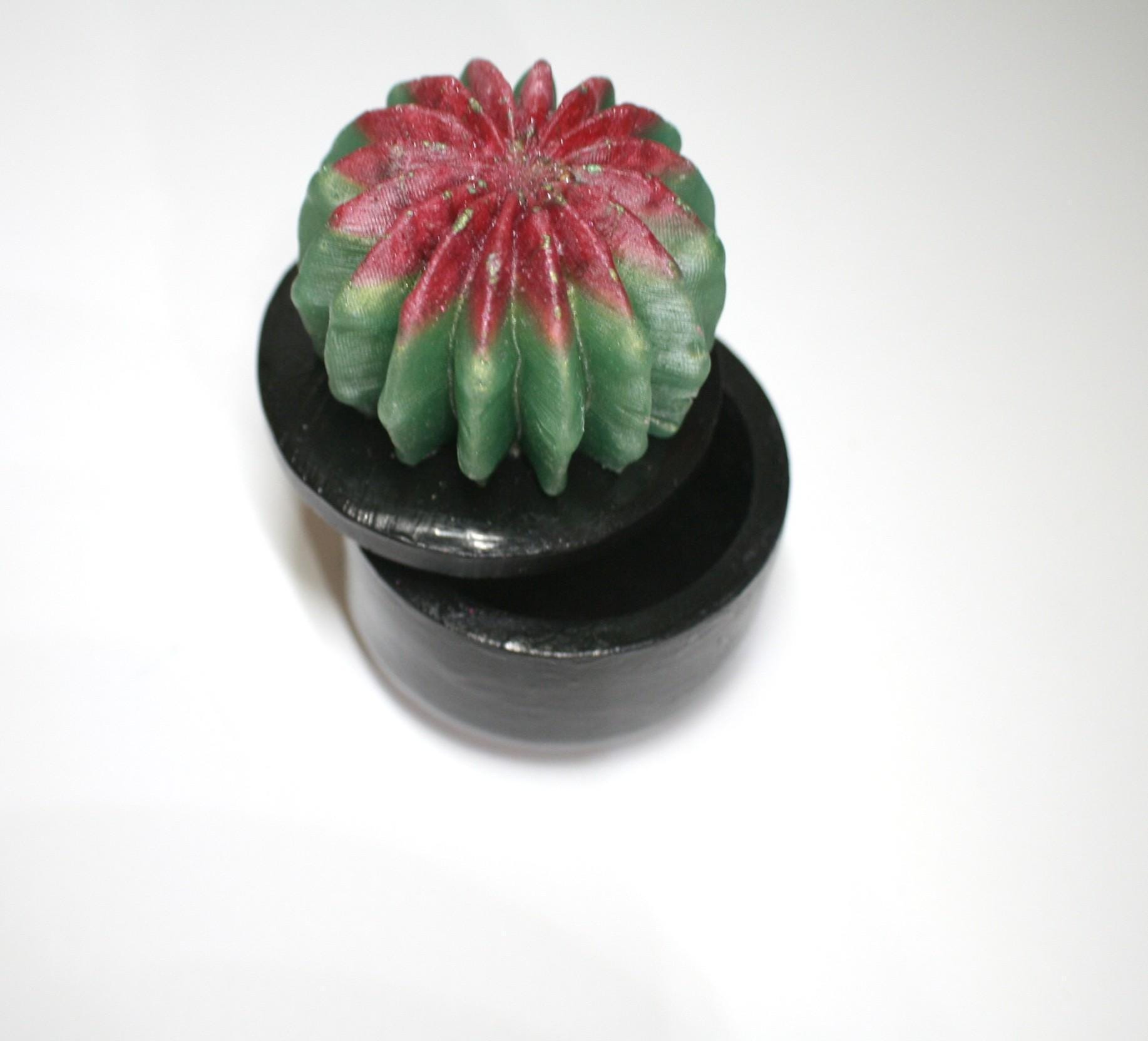 🌵 Glossy Black Round Container – Featuring a round cactus accent, perfect for desert lovers.