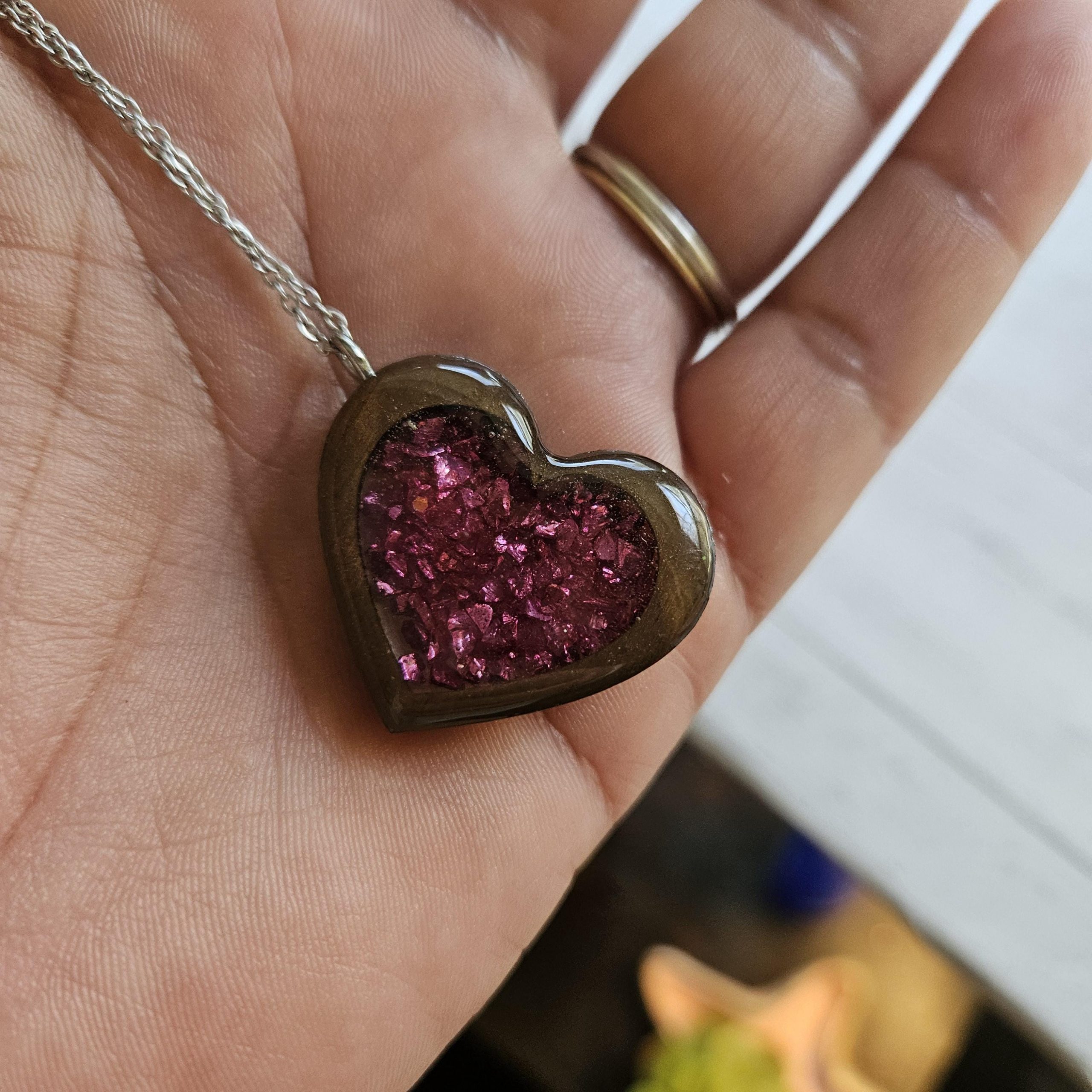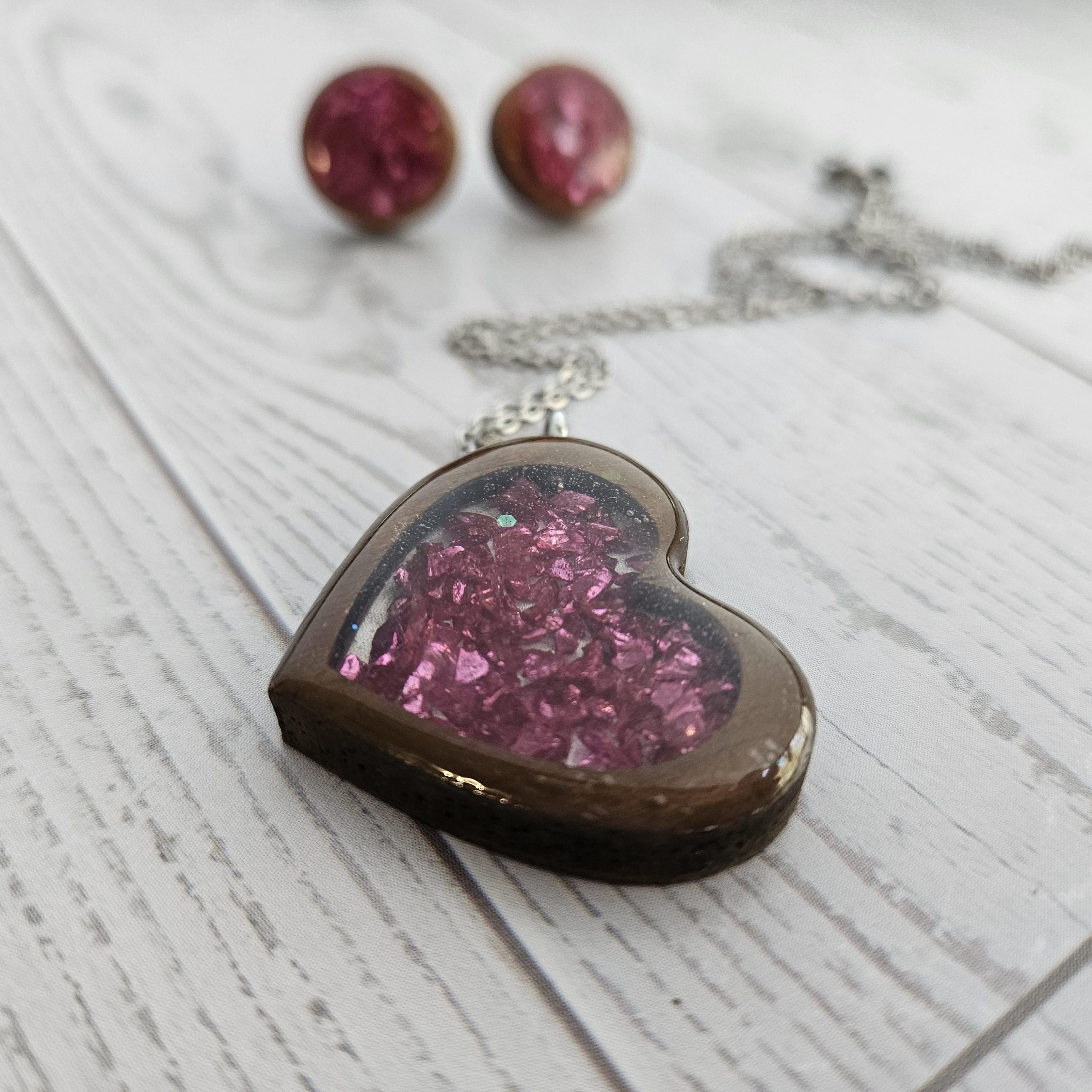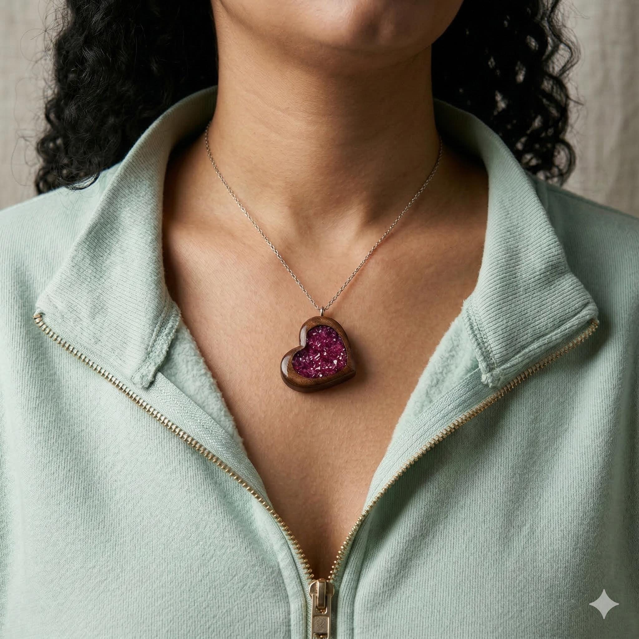 💗 Heart-shaped wood resin pendant on a stainless steel chain