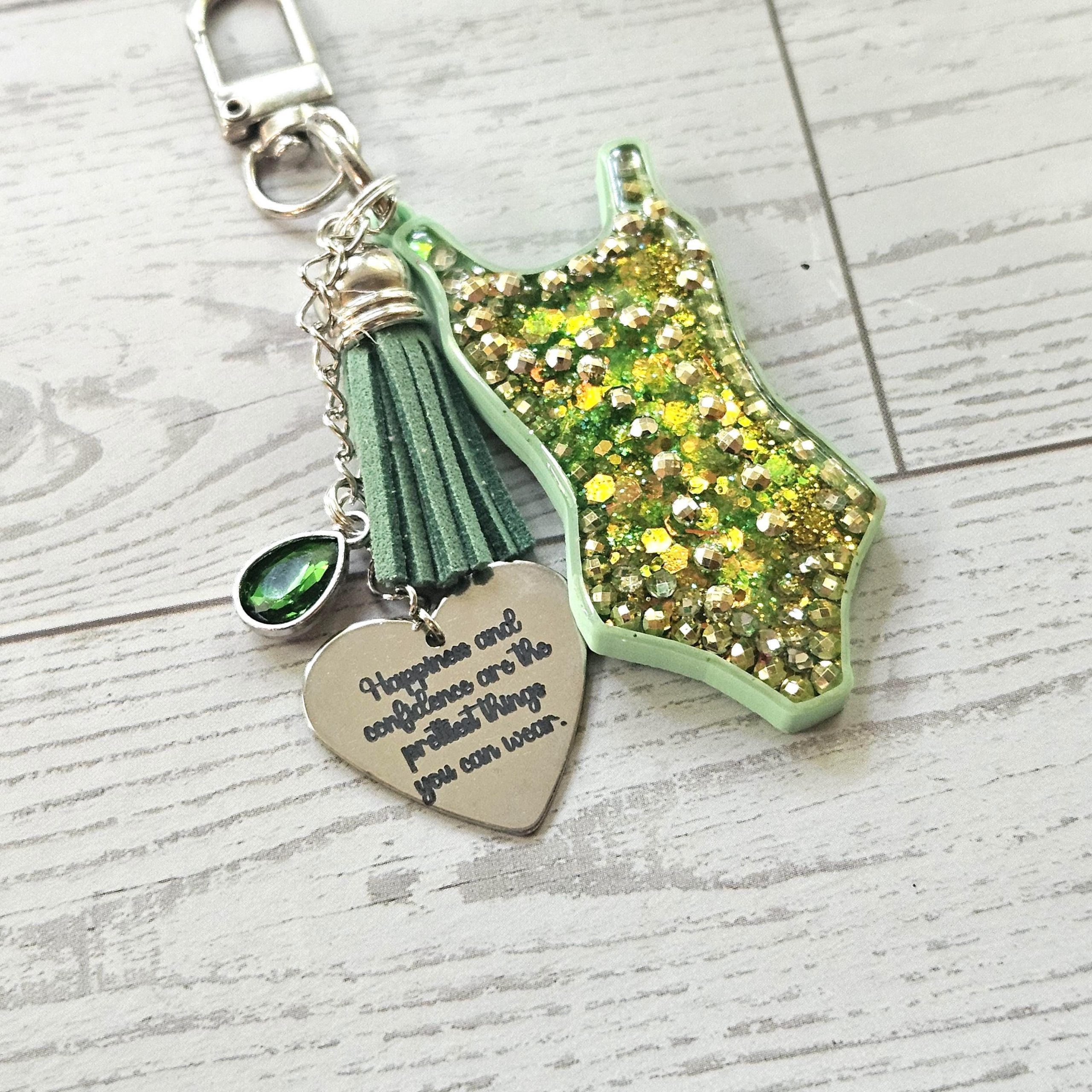 Mint Green Showgirl Glitter Bodysuit Bag Charm • Showgirl Era Keychain – Keychains – Handmade by ShesSoCrafty Goods