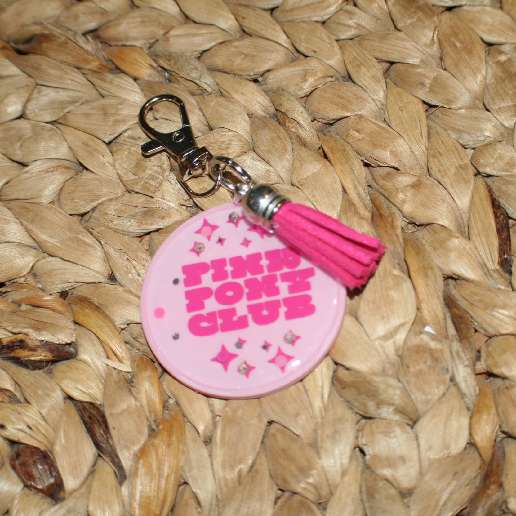 Pink Pony Club Motel Keychain Round Keychain with Tassel – Keychains – Handmade by ShesSoCrafty Goods