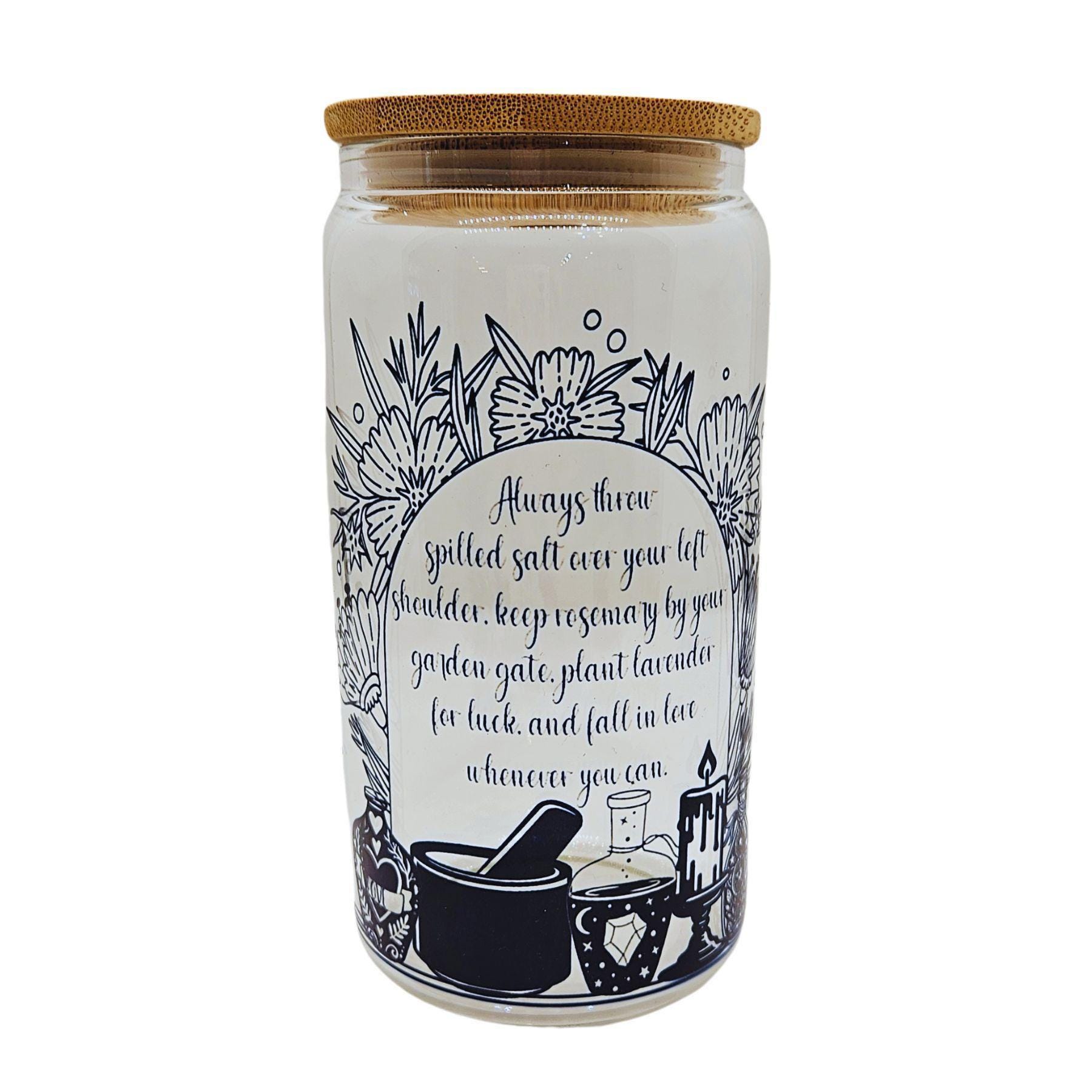 Celebrate the spooky season with this charming glass beer can cup, inspired by the enchanting world of Practical Magic and perfect for any witch lover. Designed with a bamboo lid and reusable straw, this glass tumbler blends eco-conscious style with everyday practicality. Whether you're sipping a cold cocktail or your favorite iced coffee, this 16 oz bamboo cup fits snugly in car cup holders, making it your go-to companion for on-the-go refreshment.