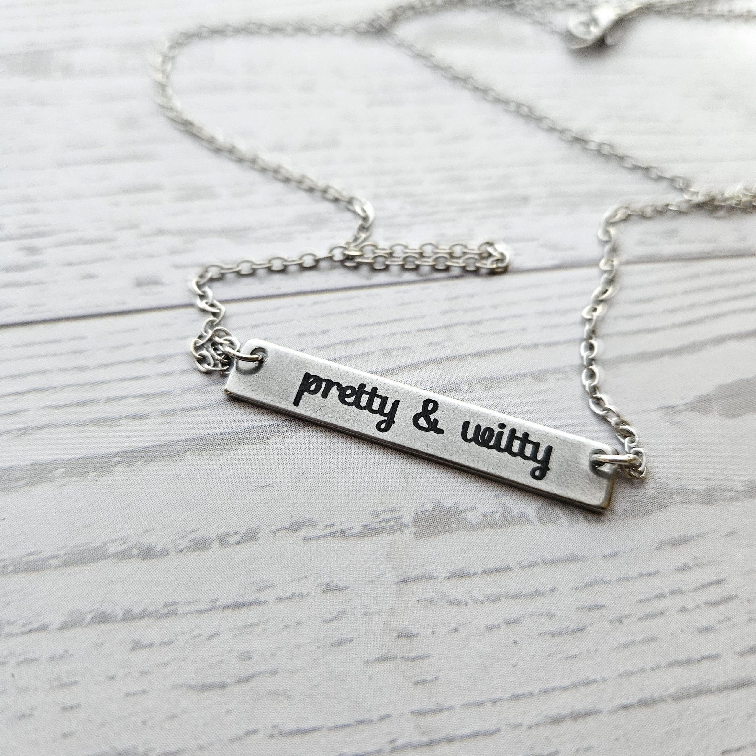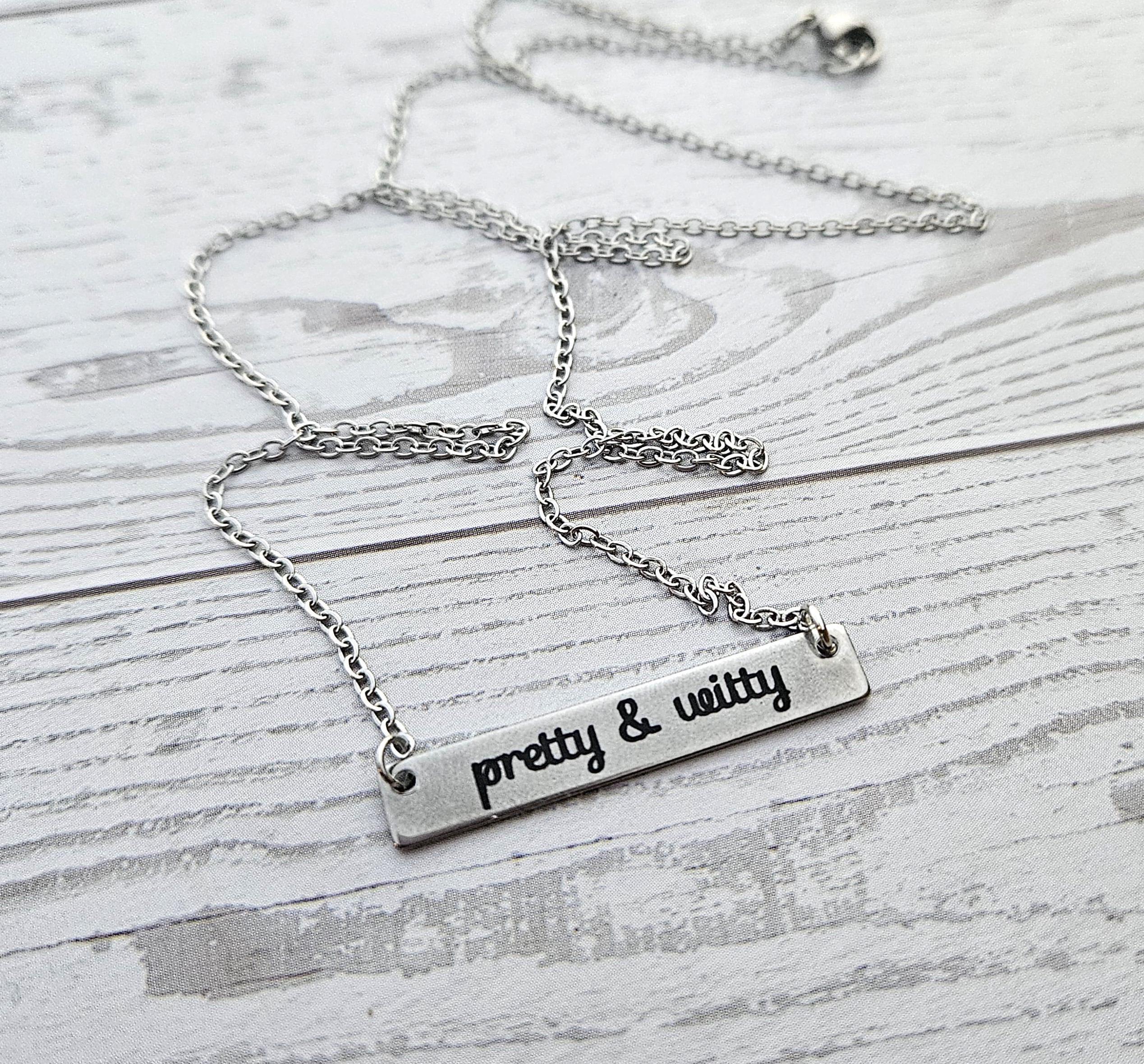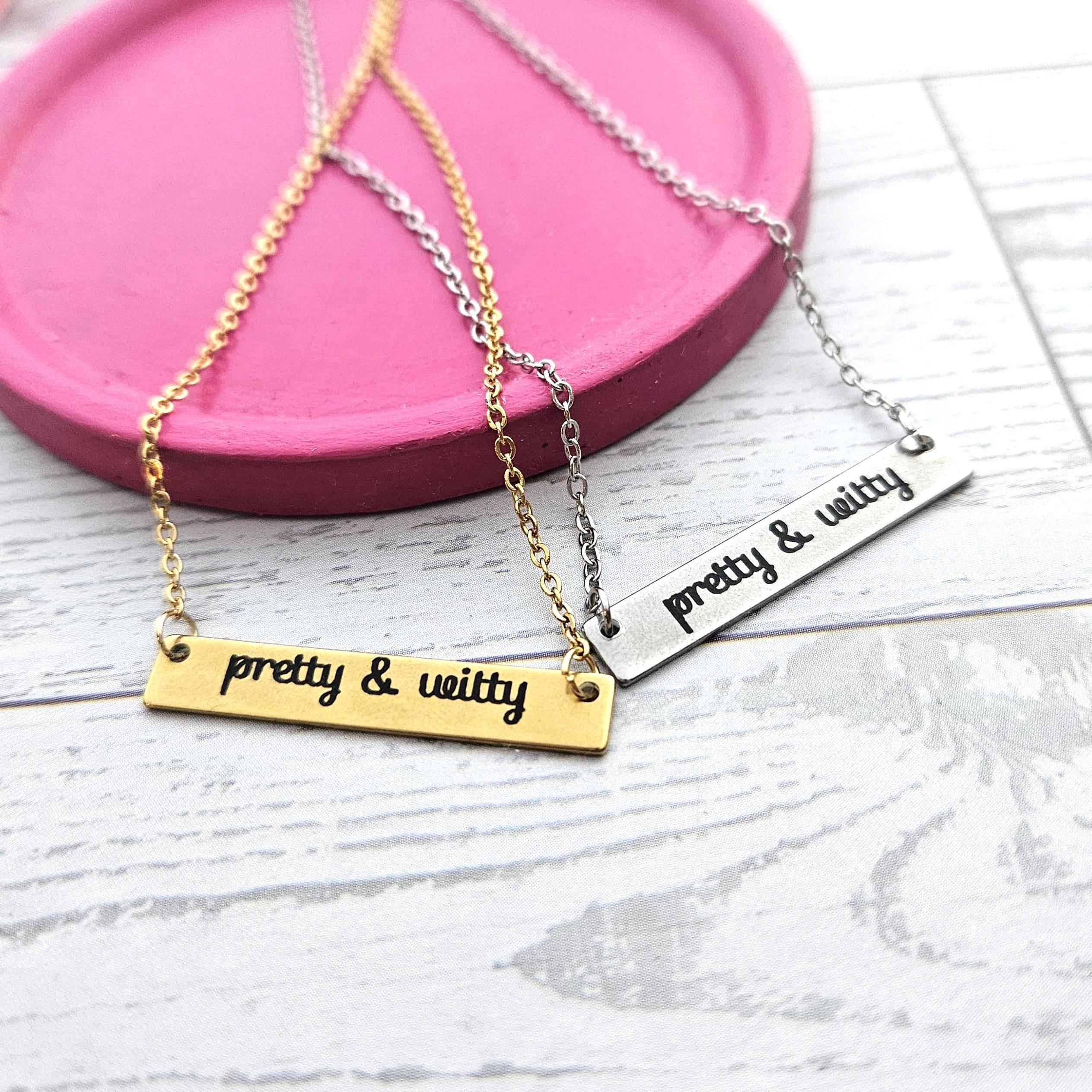 Pretty & Witty Necklace • 18K Gold PVD or Satin Stainless Steel • Tarnish-Proof Bar Jewelry – Jewelry – Handmade by ShesSoCrafty Goods