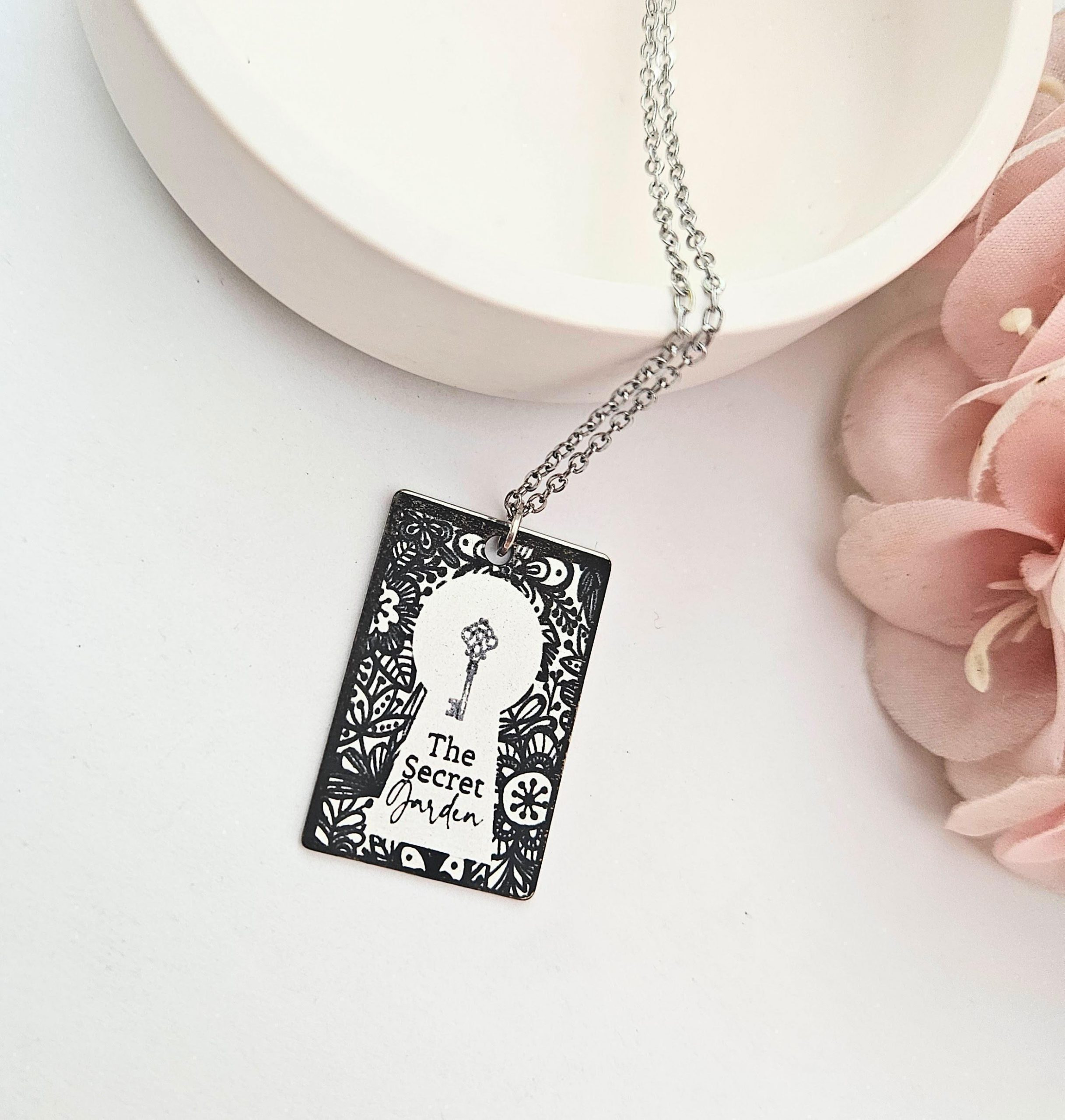 Secret Garden Book Necklace – Engraved Miniature Book Pendant – Literary Jewelry Gift