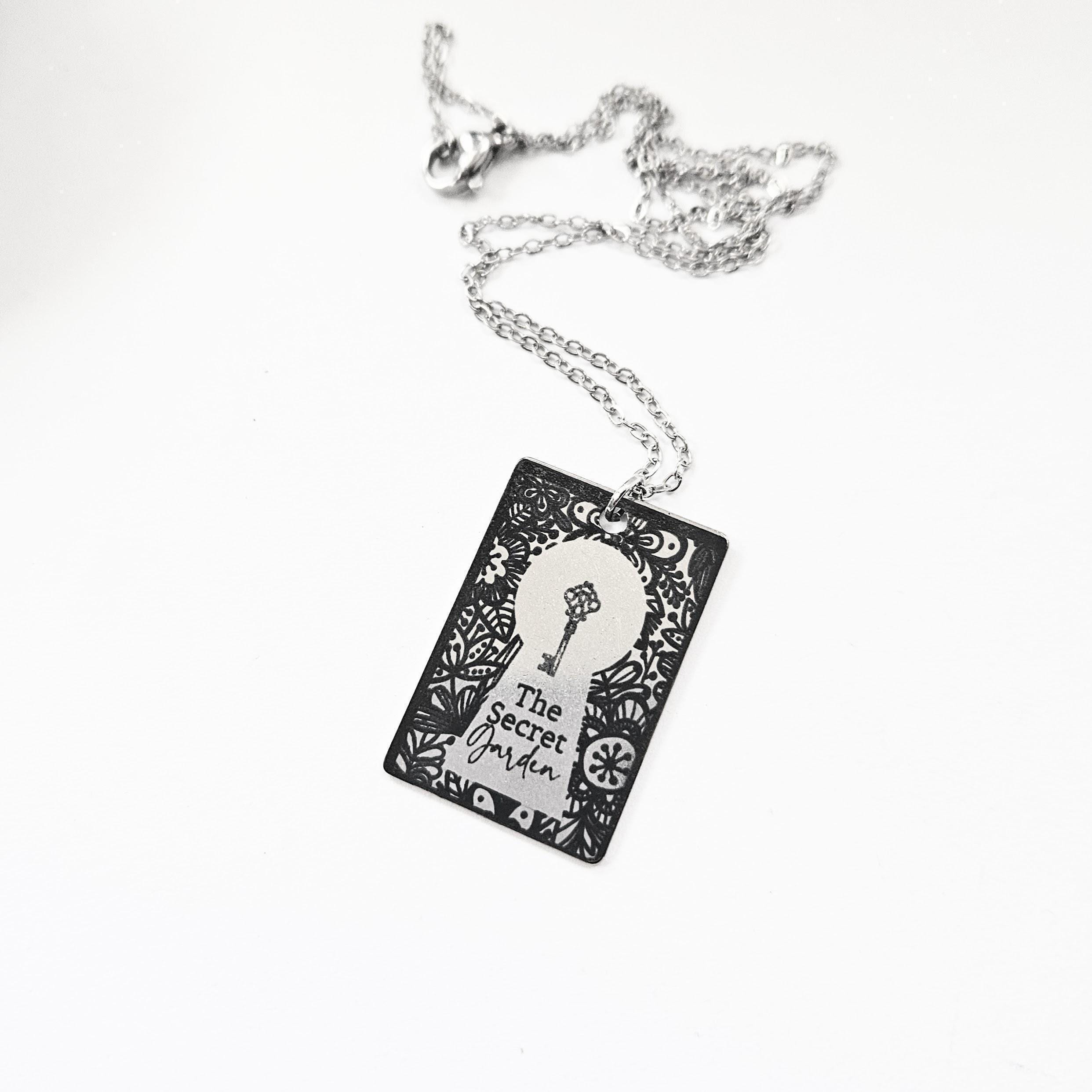 Secret Garden miniature book pendant — mirror-polish stainless steel, engraved in-house. Cottagecore literary gift for the book lover, gardener, or dreamer. “If you look the right way, you can see that the whole world is a garden.” 🌿🗝️
