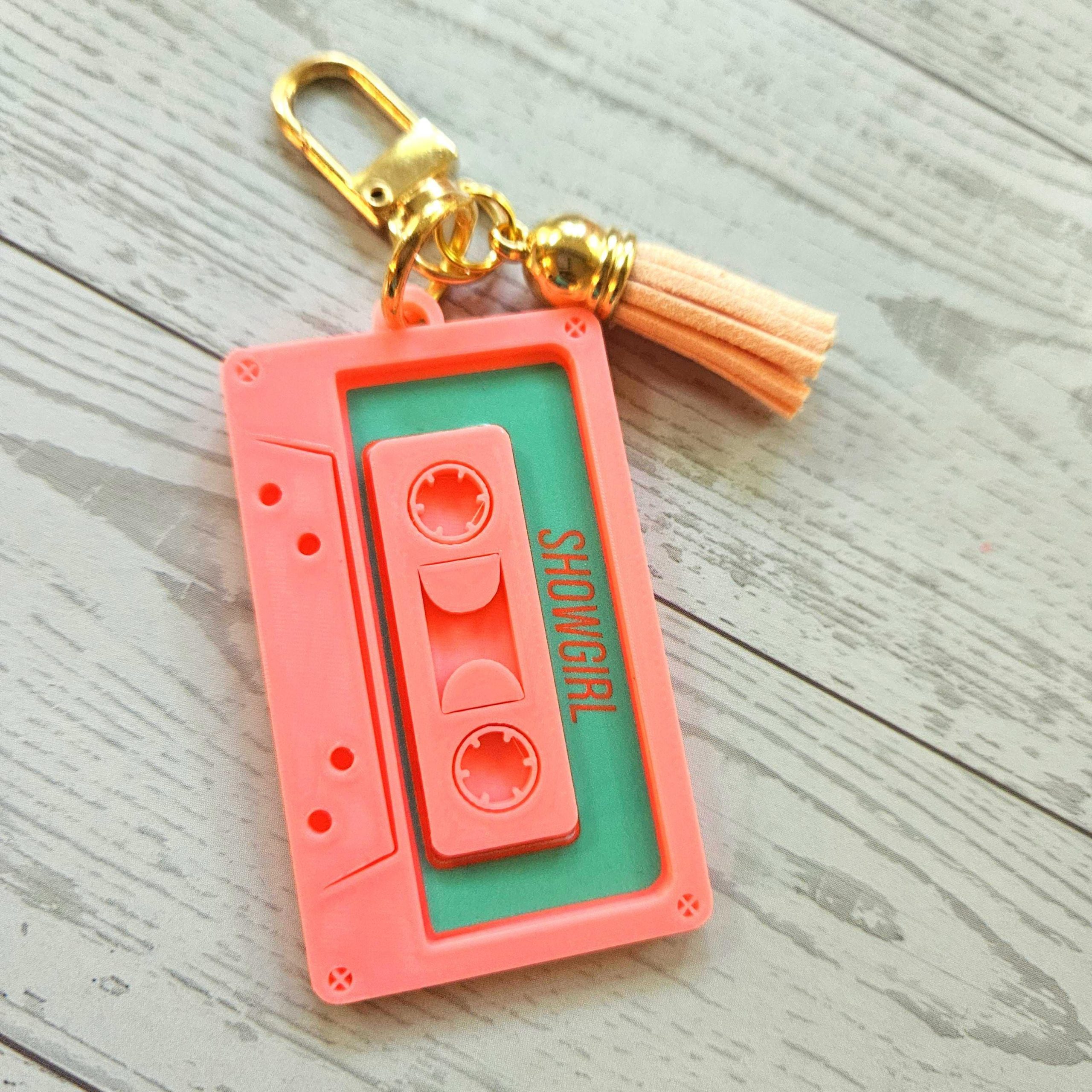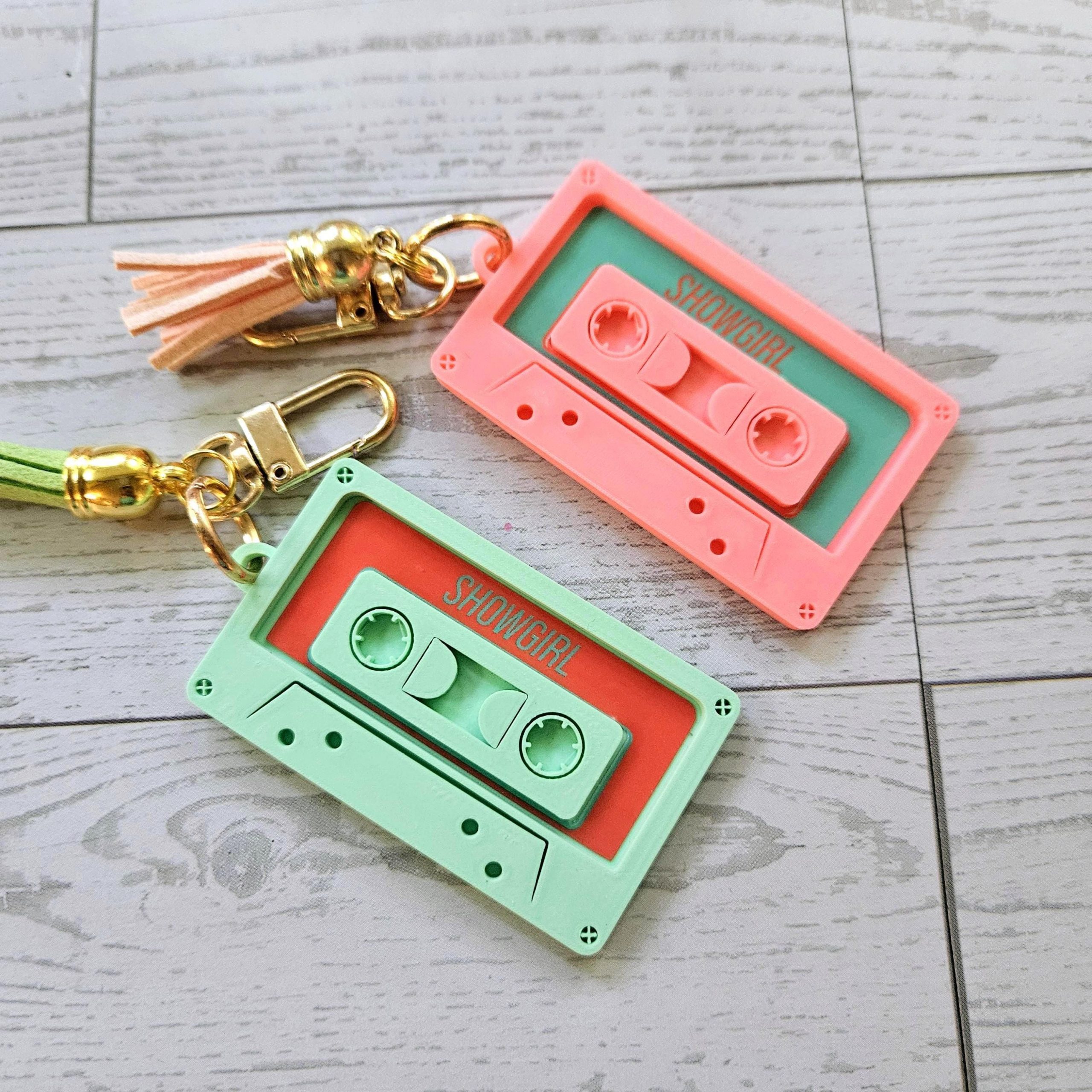 Showgirl Era Cassette Keychain – Personalized Retro Mixtape Bag Charm with Tassel