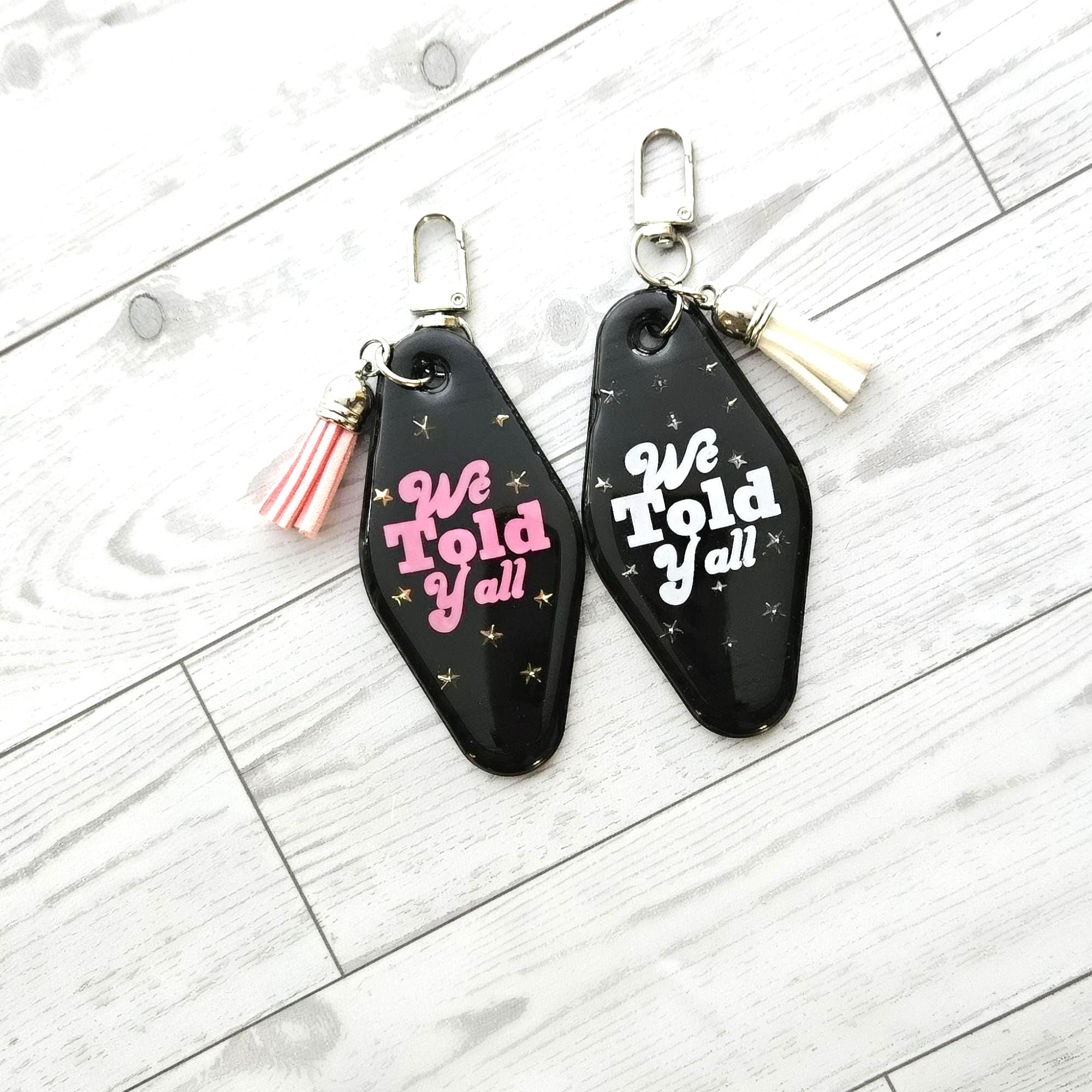 We Told Yall Resin Motel Keychain Funny Political Bag Charm Feminist Gift for Her